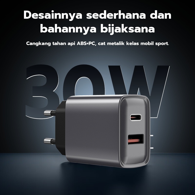 Jovitech Charger Adaptor 30W Dual Port Charger Fast Charging Type-C + USB PD iOS Android - CA02