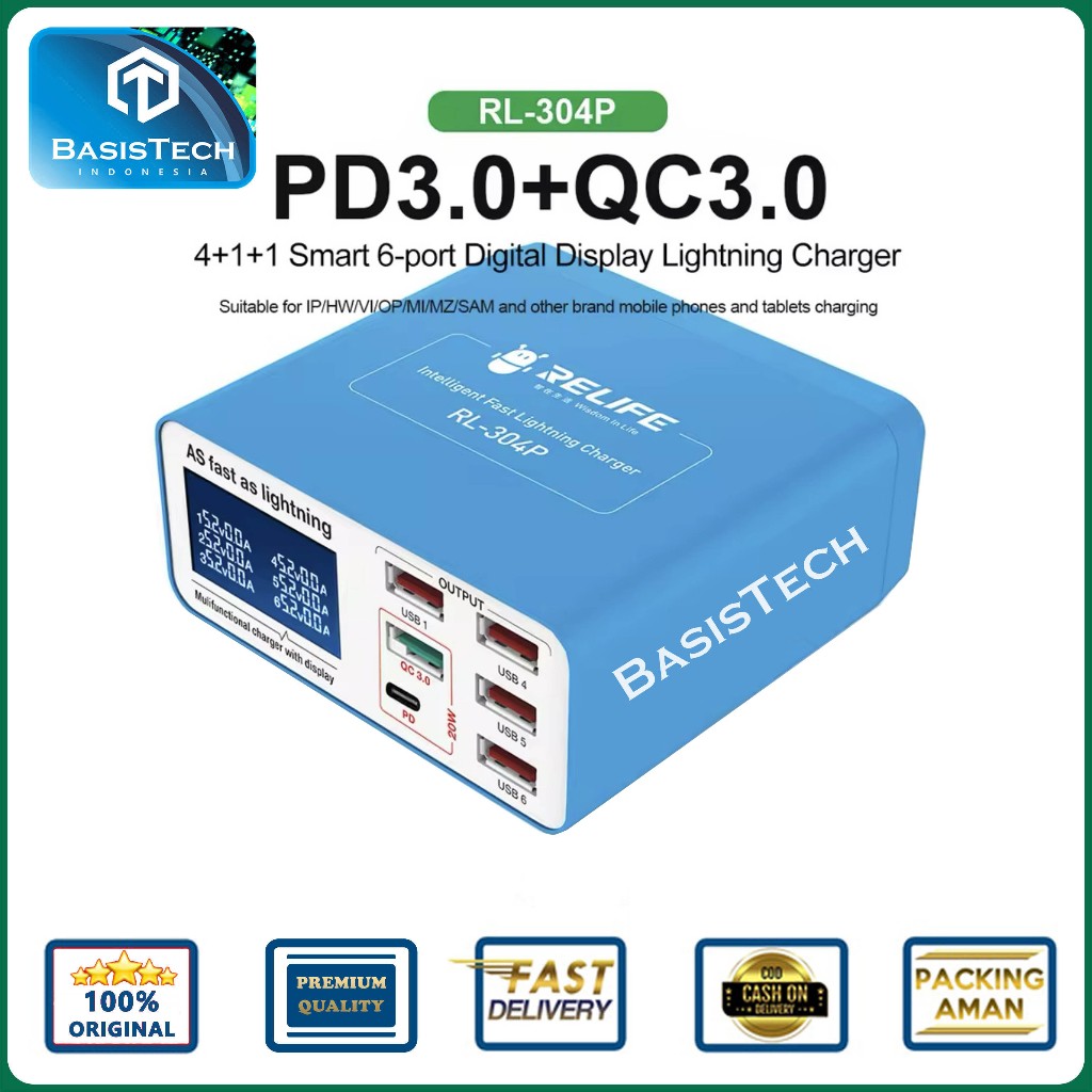 ADAPTOR CASAN 6 PORT CHARGER 5V 3A QC 3.0 FAST RELIFE RL-304P ORIGINAL