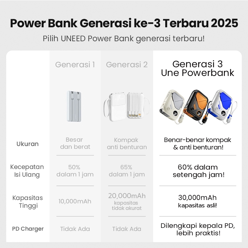 [Garansi dua tahun] UNE Powerbank Fast Charging Mini Wireless Magnetic 30000/20000mah PD35W with Plug/Cable Type C