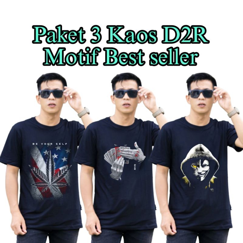 Paket 3 Kaos D2R original clothing Distro / Baju pria wanita Dewasa / Produk Laris dari bandung