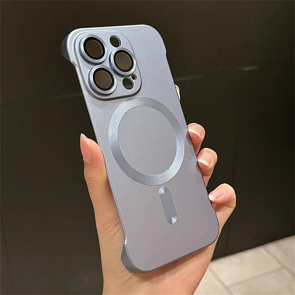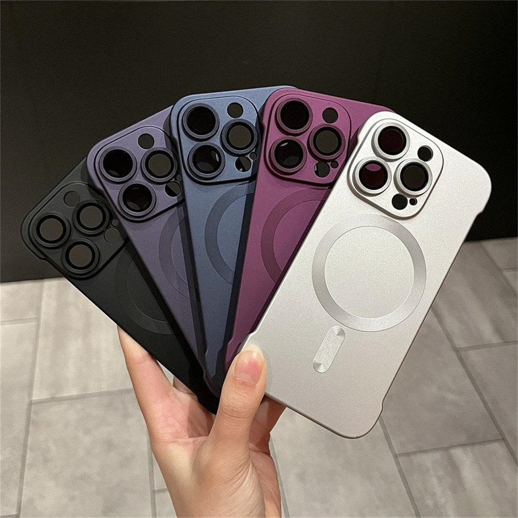 Casing navy blue Ultra Thin Frameless Matte Hard Case Pengisian magnetik Phone Case For iPhone 15 14 13 12 11 Pro Max 11 Case Cover Pelindung Kamera