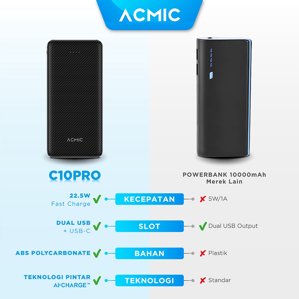 ACMIC C10PRO 10000mAh Powerbank Slim 22.5W Fast Charging Type C