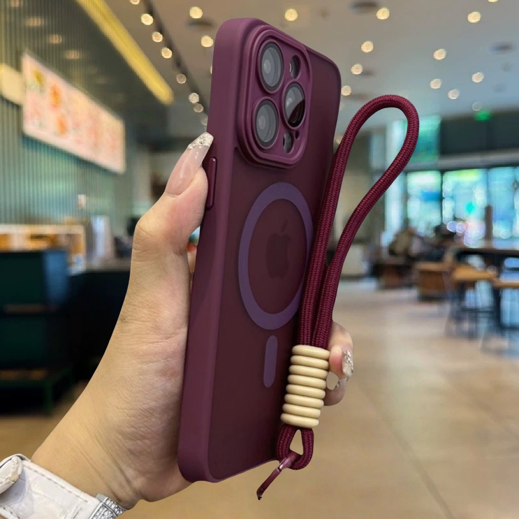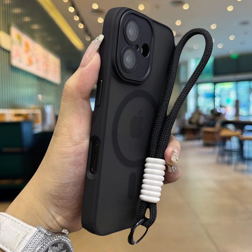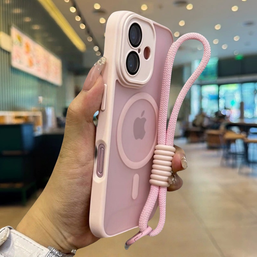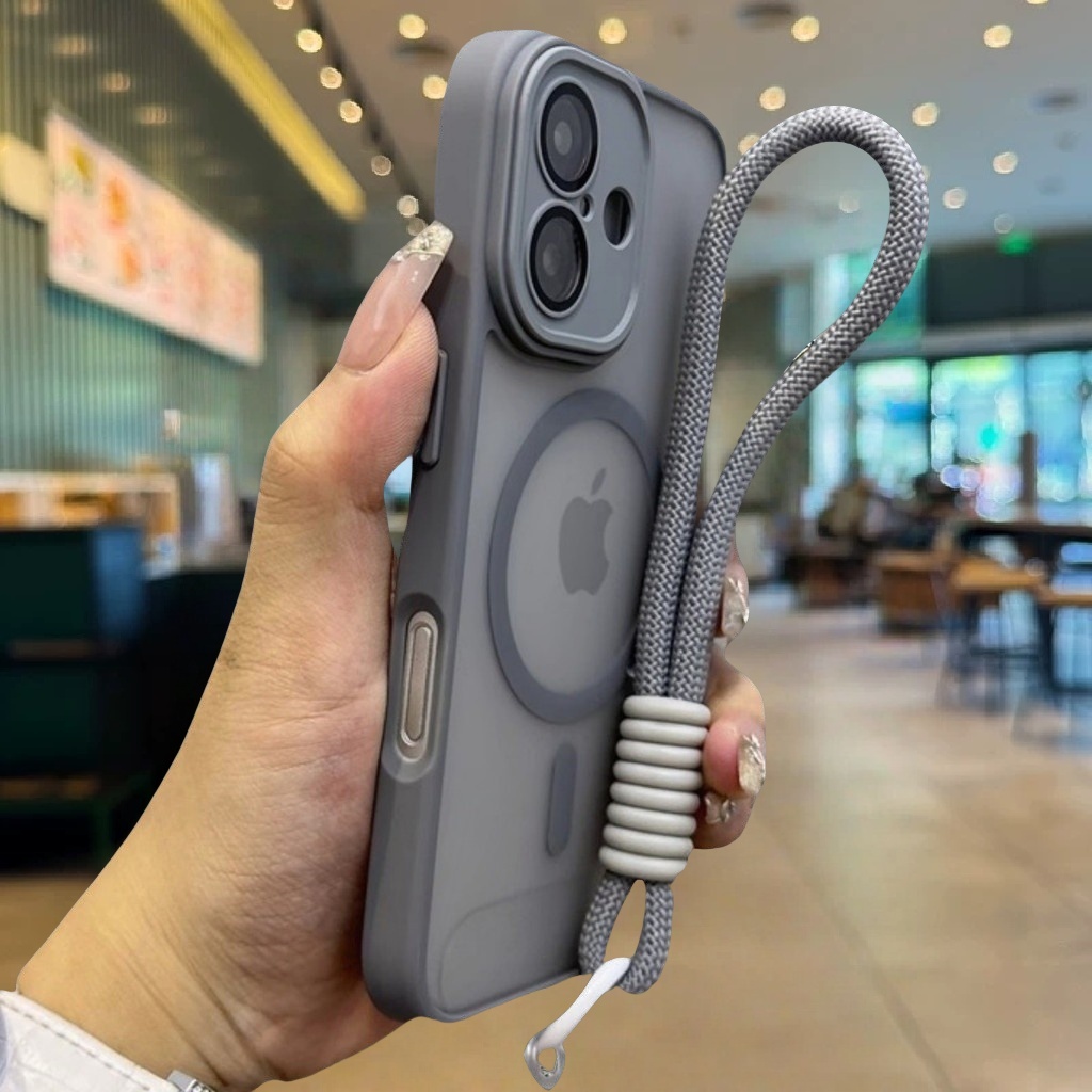 Casing iPhone 16 15 14 13 12 11 Pro Max Luxury Acrylic Bumper Matte Plating Transparent Magnetic Phone Case for iPhone 11 12 13 14 15 16 Pro Hard Case Shockproof Protective Back Cover with Lanyard
