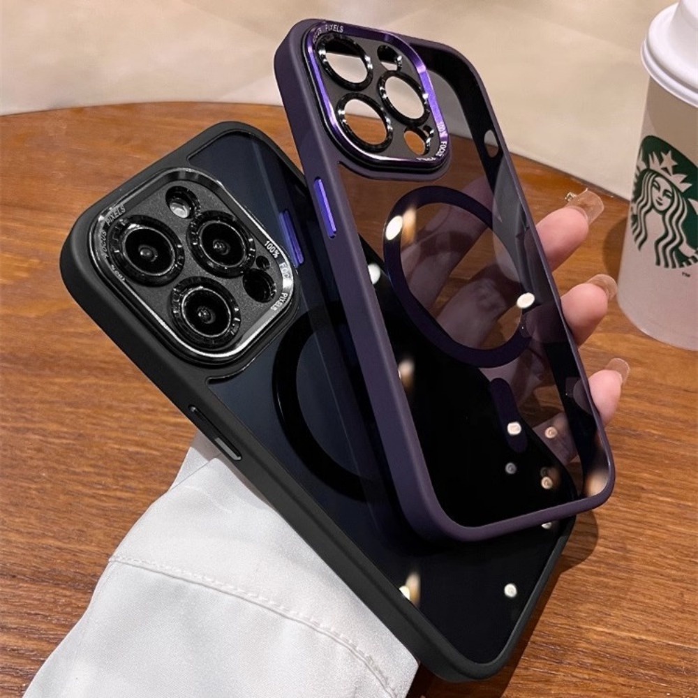 Untuk iPhone 16 15 ProMax Magnetic Acrylic Phone Case untuk iPhone 14 15 12 13 Pro Max Titanium dengan Lensa Perlindungan kamera Hard Cover