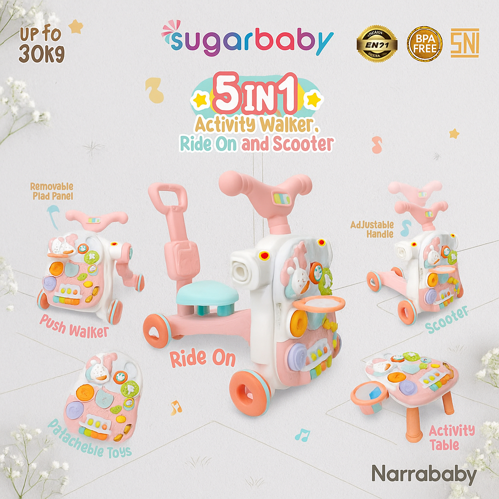 Sugarbaby Train Activity Walker 5in1 Mode Ride-On and Scooter / Baby Walker / Push Walker Bayi