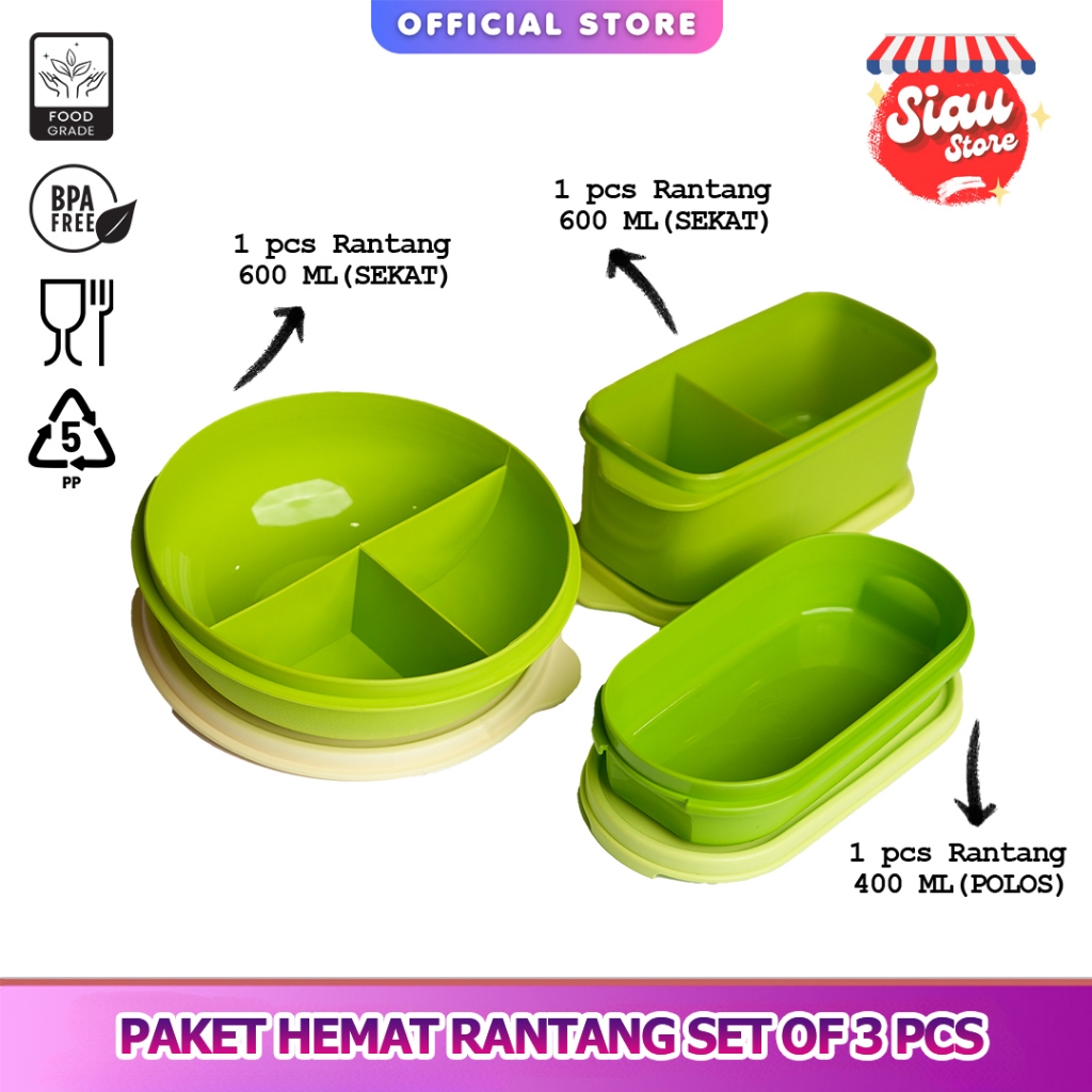 SIAU STORE KOTAK MAKAN PAKET HEMAT 3 PCS ( 1 PAKET ISI 3 ) BPA FREE Murah Gratis Ongkir