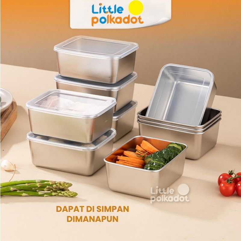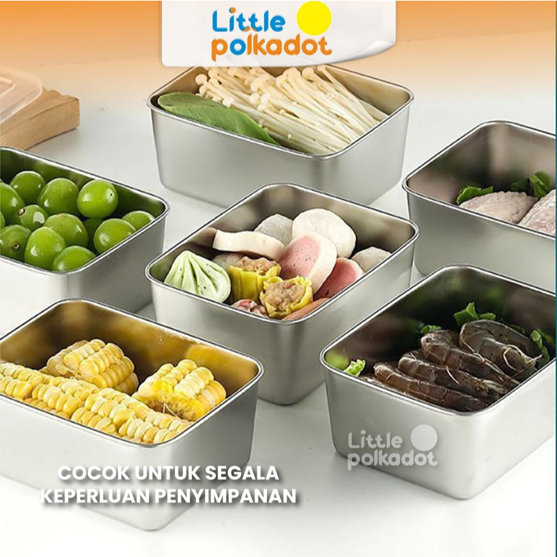 Littlepolkadot 6PCS Tempat Wadah Makanan Box+Tutup Kontainer Makanan Sayuran Food Box Stainless Steel Food Storage conta