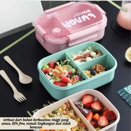 (KEYA) Lunch Box Set Kotak Bekal Makan Siang Free Sendok 1100ML Murah Gratis Ongkir