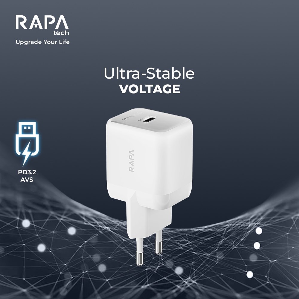 [Charger iPhone 15-16] RAPAtech Power Mini GaN 30W Charger iPhone 15 16 17 Type C to C Nylon Braided Cable (PD 30W) Ice-Cooled Fast Charging Technology