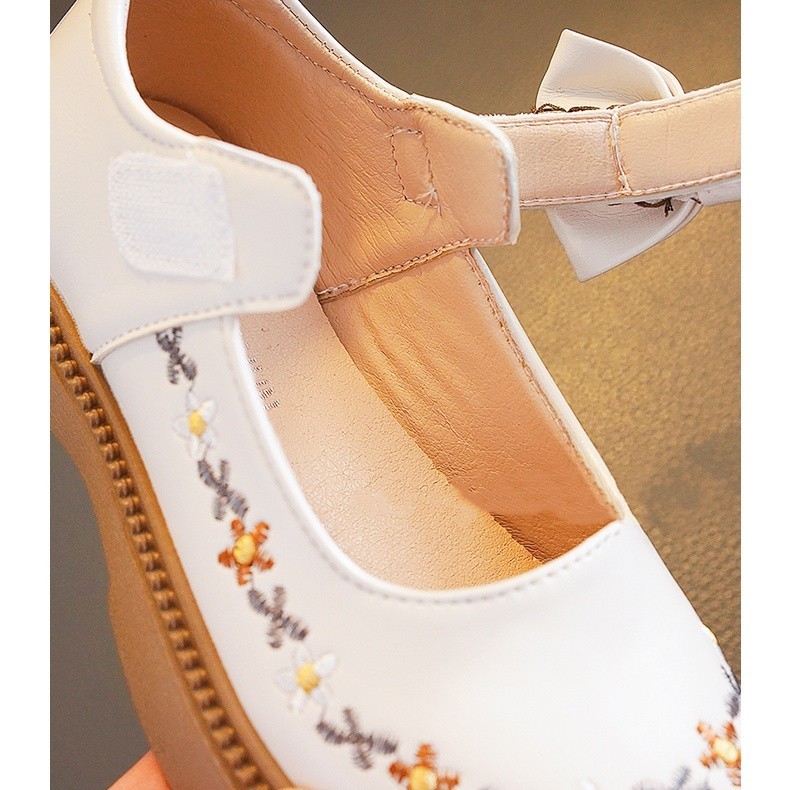 Bunga Sepatu Flat Kulit Bayi Perempuan Ukuran 23-34 Sepatu Anak Ikatan Simpul Sederhana Elegan Bordir Ujung Bulat