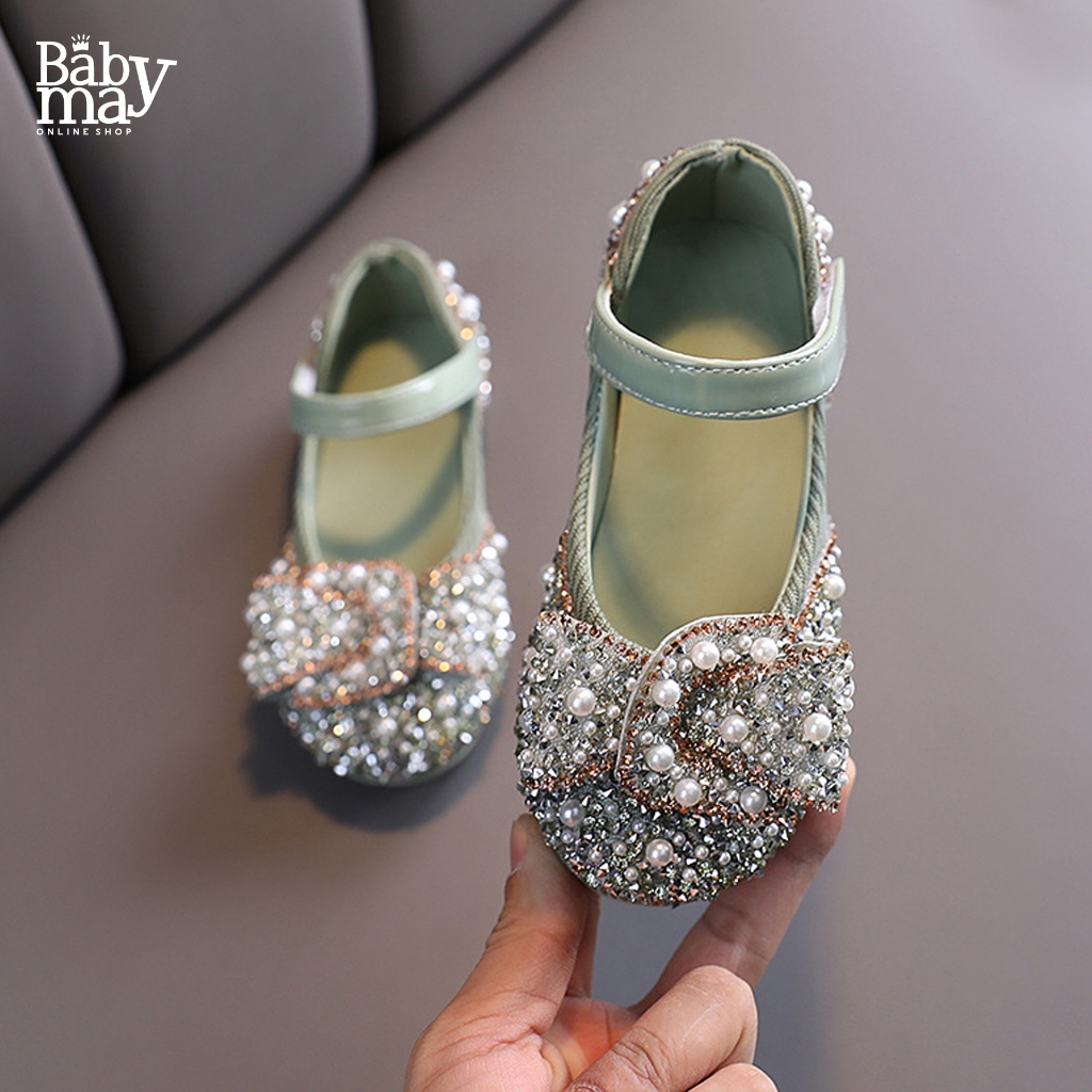 Sepatu Pesta Anak Perempuan Pita Mutiara / Sepatu Flat Anak Perempuan Import Premium