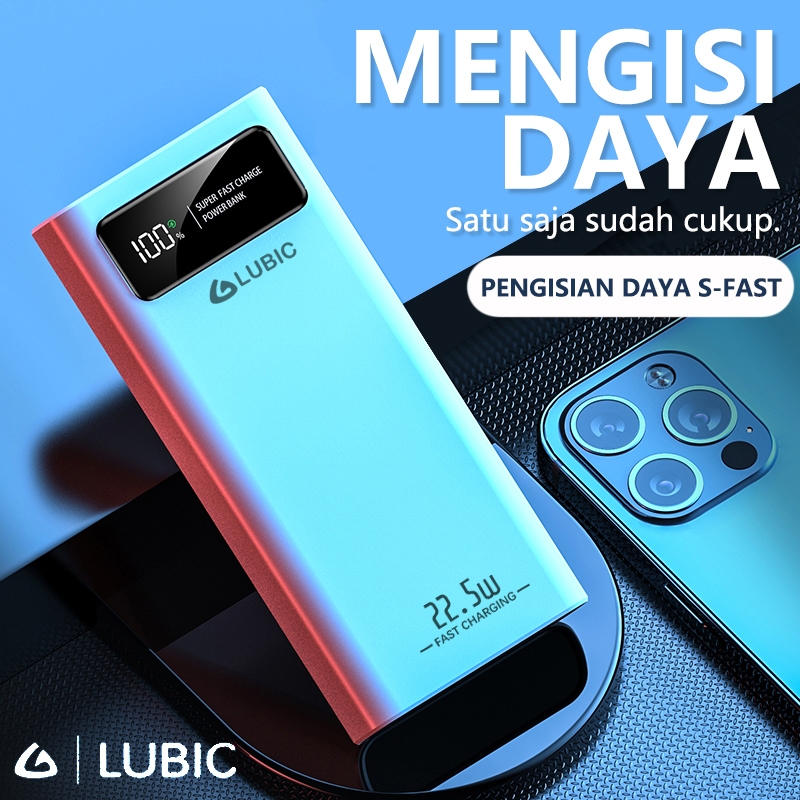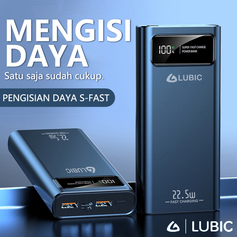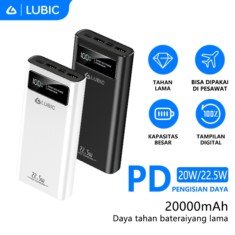 LUBIC Powerbank 20000Mah 22.5W Fast Charging Dual USB Type C Micro LED Display Bank daya