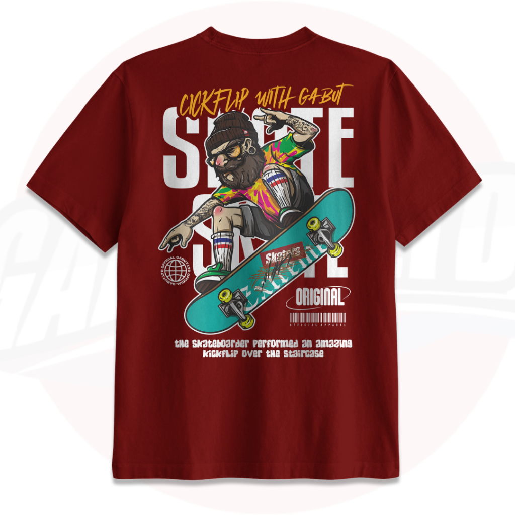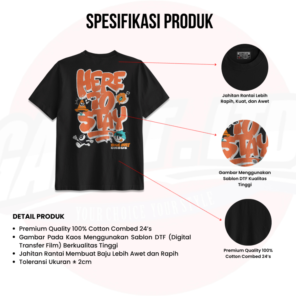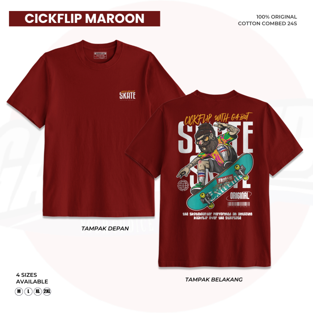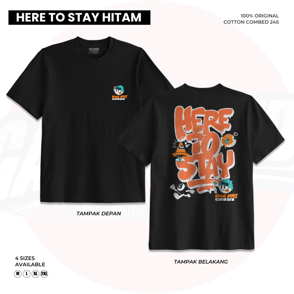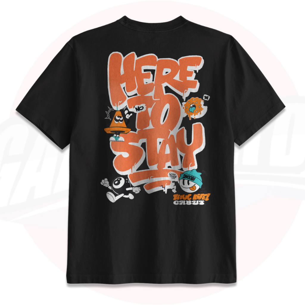 [GABUT] - Paket Bundling 2pcs Baju Kaos Distro Unisex Pria Wanita Motif Here To Stay Hitam dan Cickflip With Gabut Maroon Cotton Combed 24s Kaos Oblong Pria Wanita 100 persen Produk Original