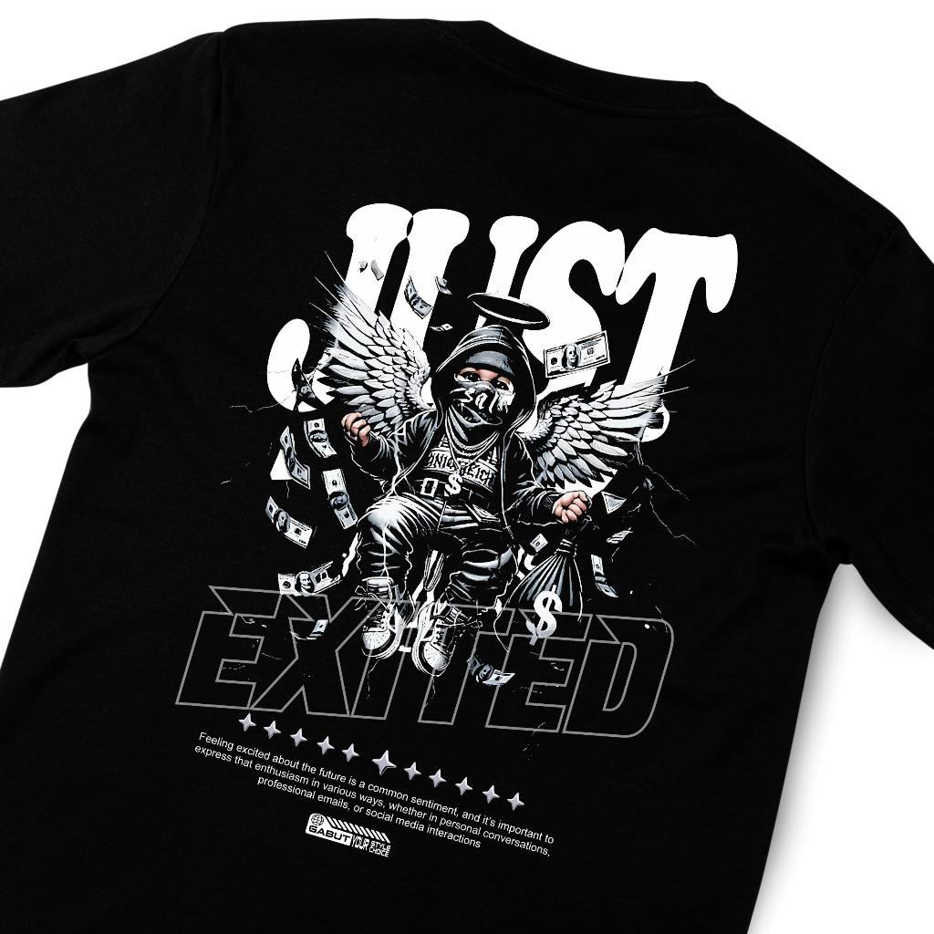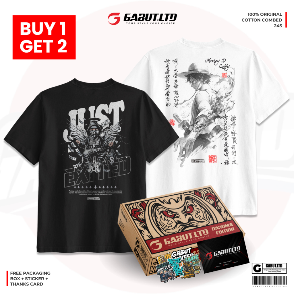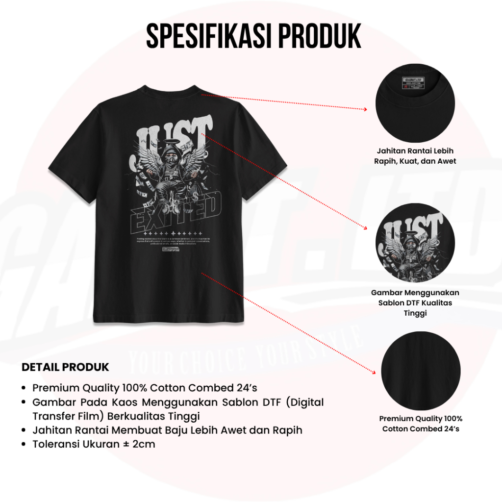 [GABUT] - Paket Bundling 2pcs Baju Kaos Distro Unisex Pria Wanita Motif JUST EXITED HITAM dan GABUT ACE PUTIH Bahan Cotton Combed 24s Kaos Oblong Pria Wanita 100 persen Produk Original