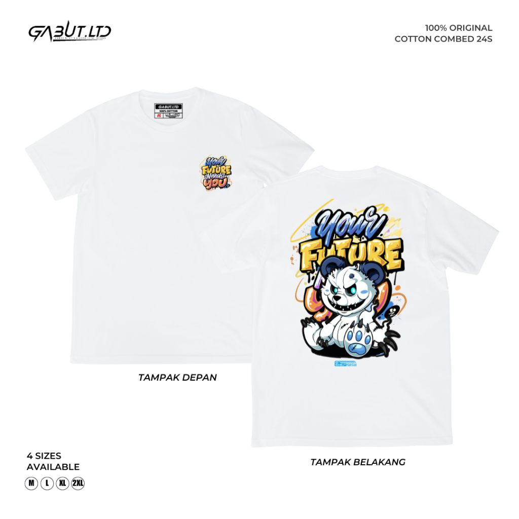 [GABUT] - Paket Bundling 2pcs Kaos Distro Dewasa Pria dan Wanita Cotton Combed 24s Sablon DTF Motif Your Future Putih dan Gabut Here Hitam