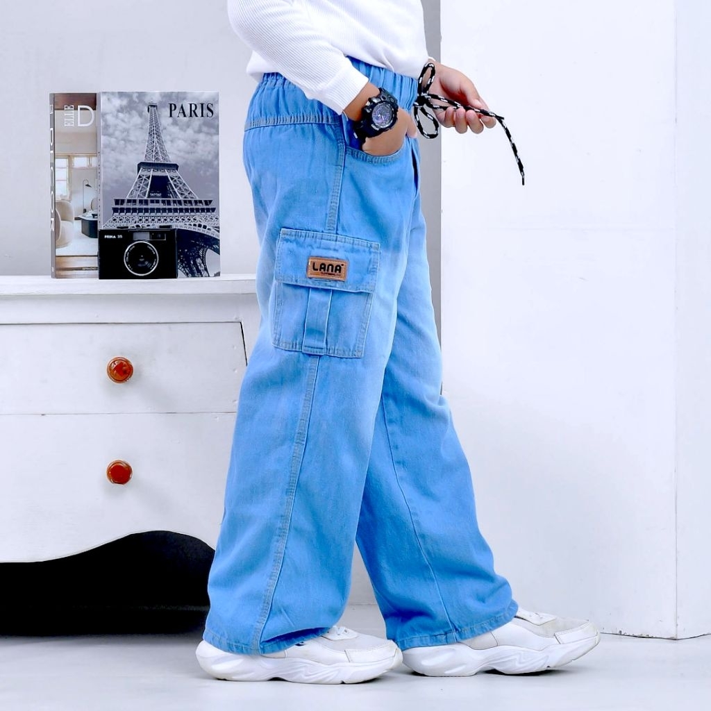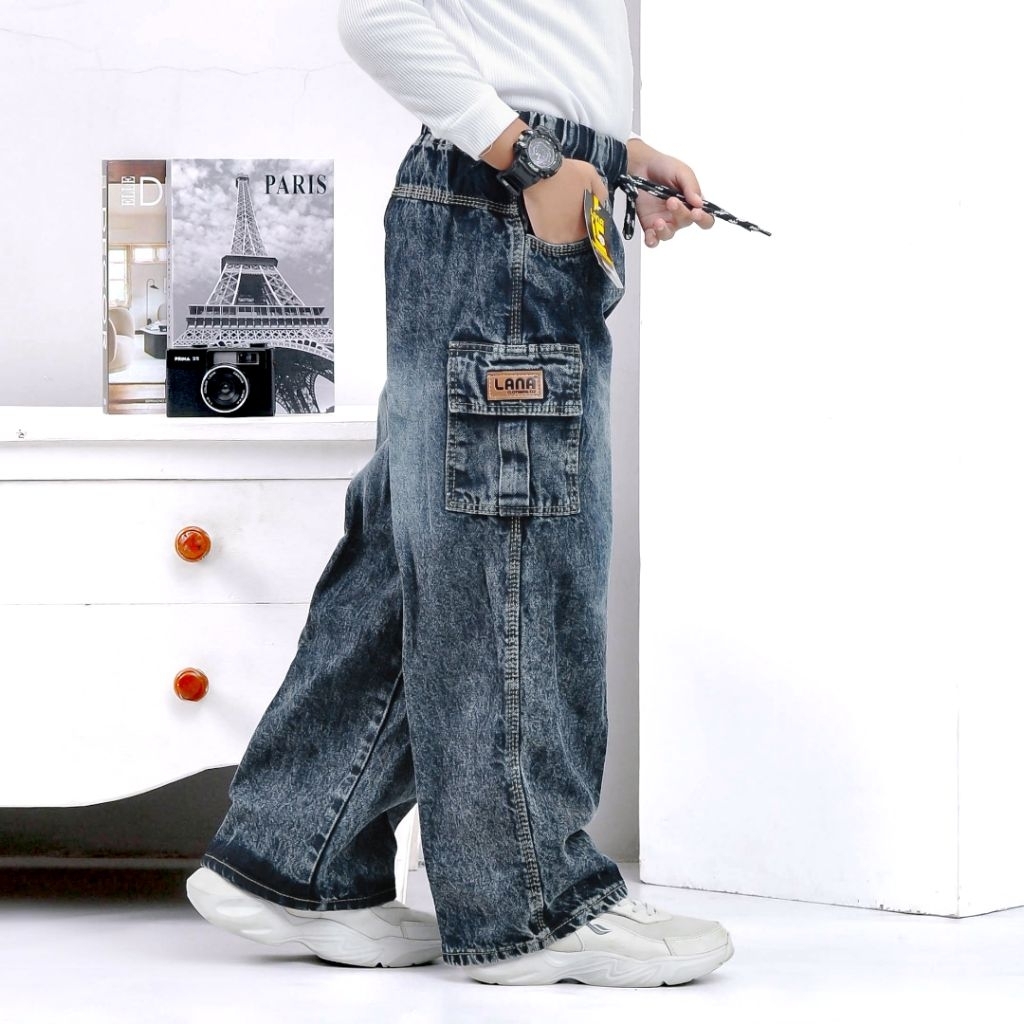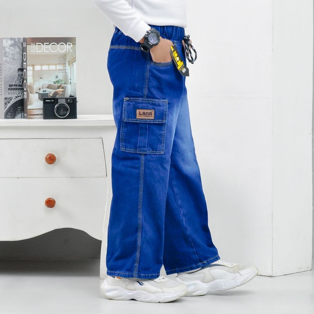 celana jin panjang anak baggy cargo skena gombrong By Lana Collection usia 1-12 tahun KAIN JIN PREMIUM HALUS WARNA BLACK
