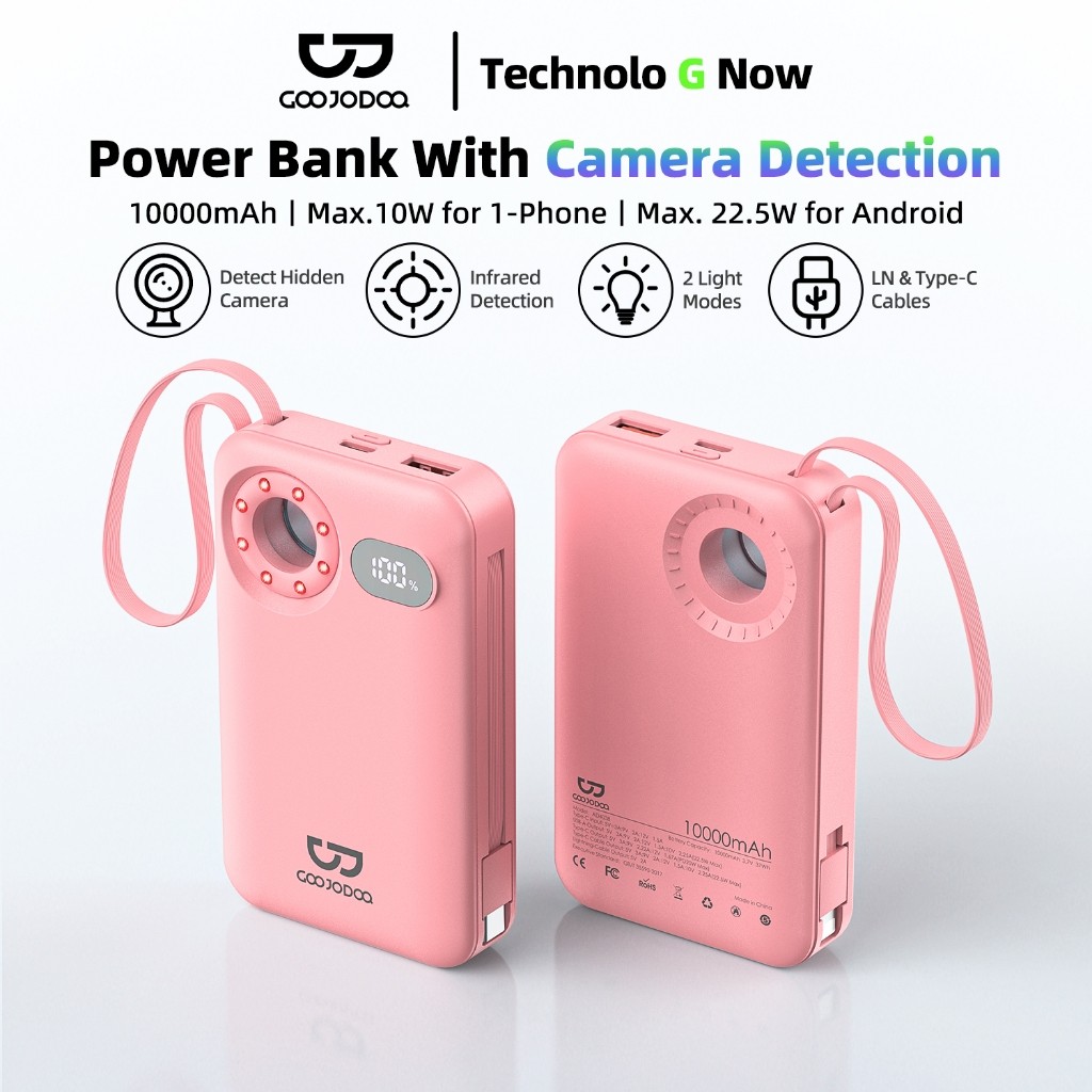 GOOJODOQ 10000mAh Wired PowerBank Camera Detection Large Capacity Fast Charging Safe Portable Type C