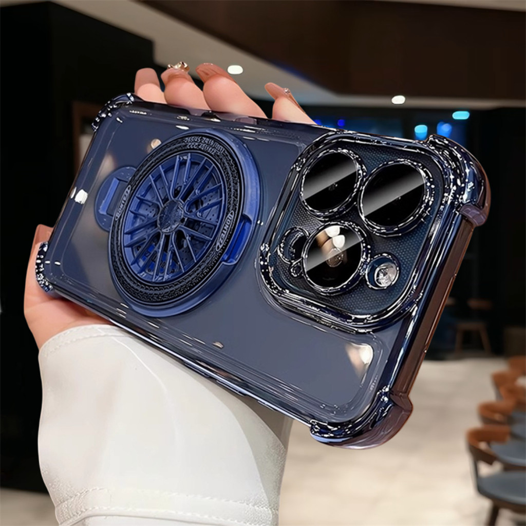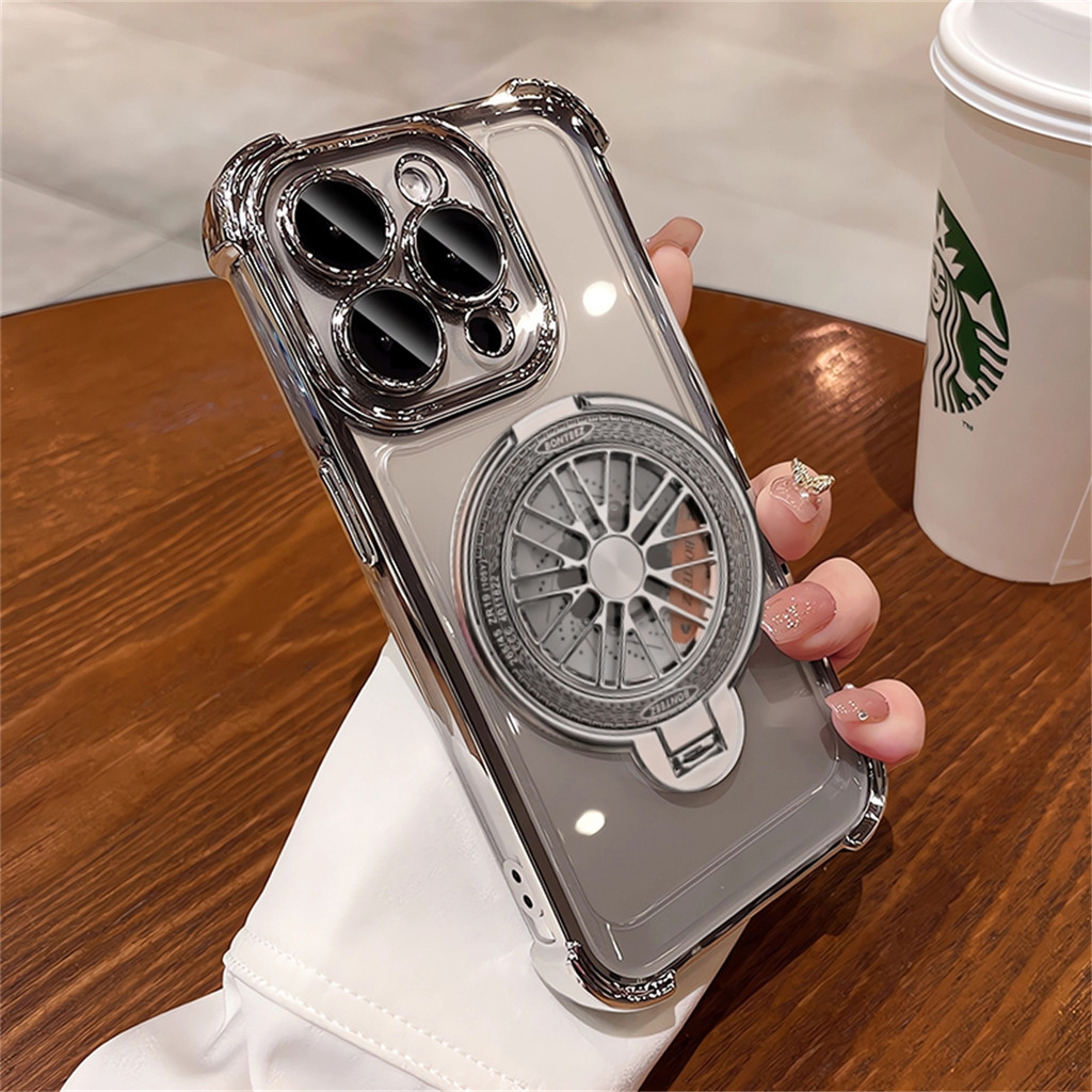 Premium Transparent Hard Case Premium Magnetic Rotating Gyroscopic Bracket Phons Case for IPhone 11 12 13 14 15 Pro Max Plating Bening Bumper Case Cover Magsafe