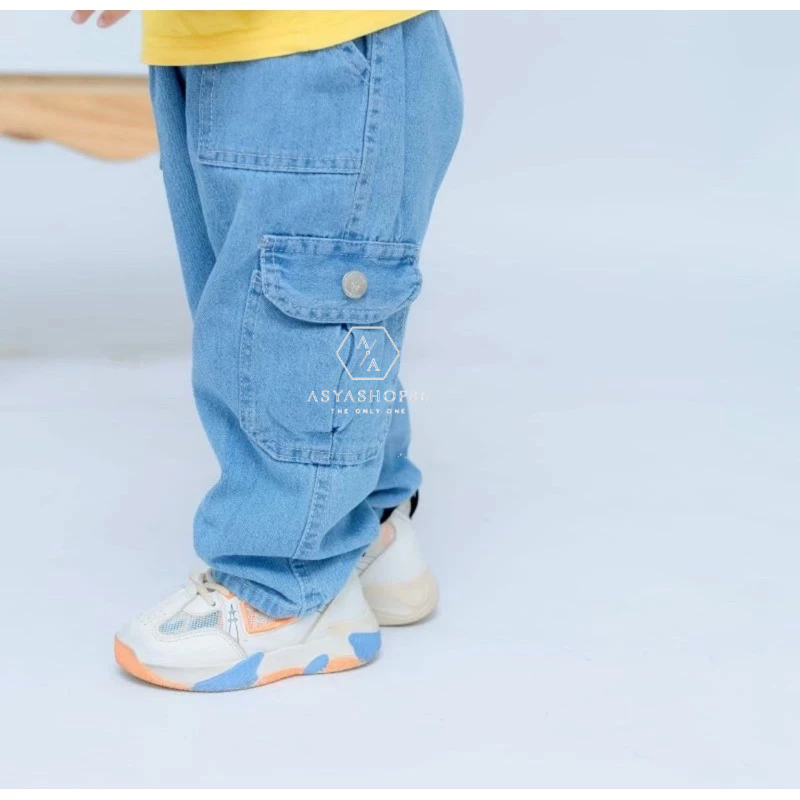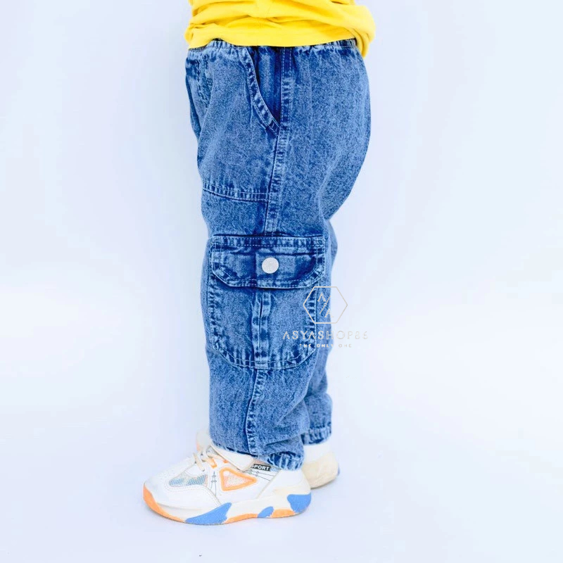 Celana Cargo Jeans Anak Laki-Laki Usia 1-7 Tahun - Bawahan Panjang Cargo Denim Anak Cowok Terbaru Viral - Celana Kimpul