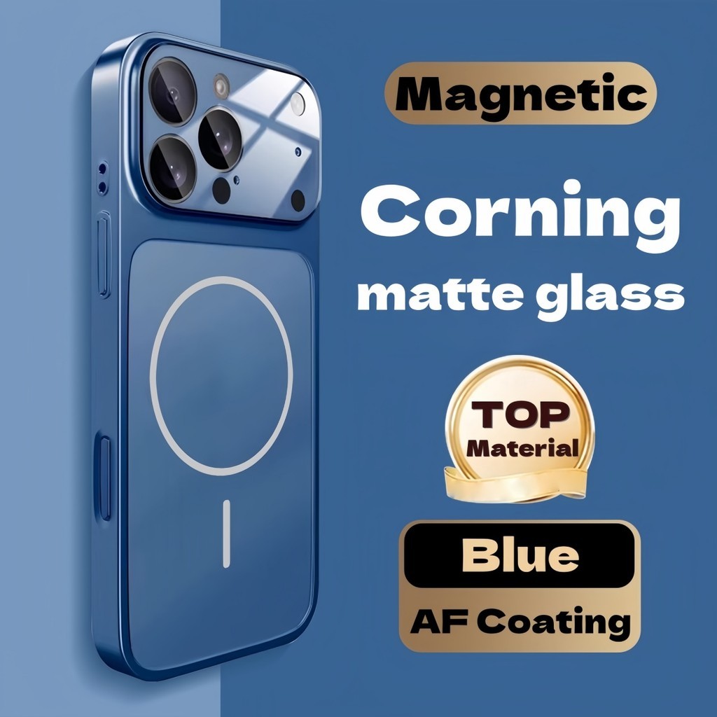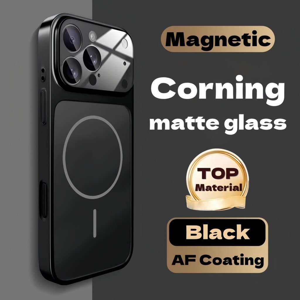 New Casing Luxury Shockproof Corning Matte Glass Phone Case with Lens Protector for iPhone 16 15 14 13 Pro Max to 17 pro max air pc hard case magnetic