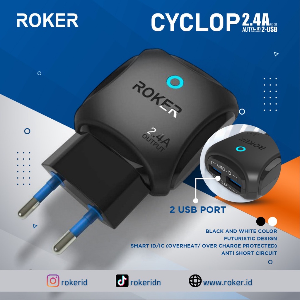 Charger Roker Cyclop 2.4A Auto ID + include kabel micro usb