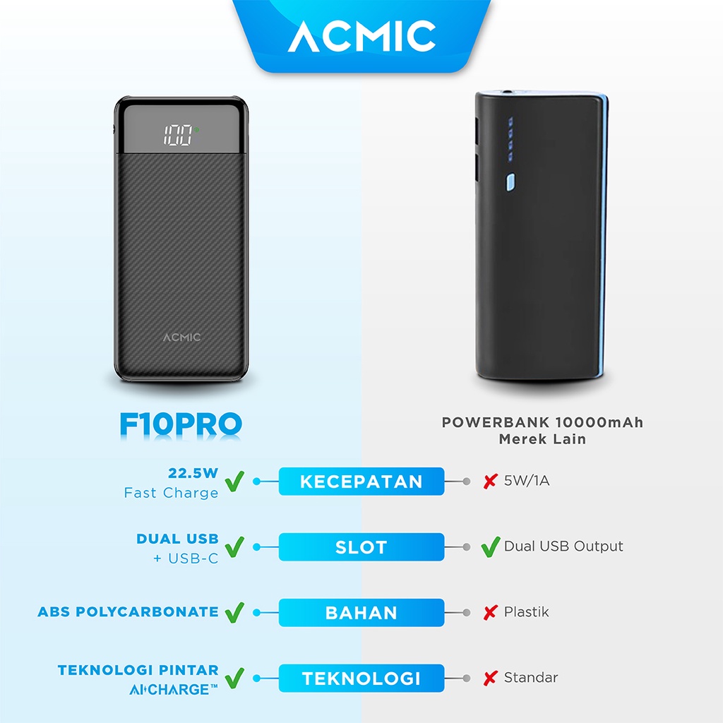 ACMIC F10PRO 10000mAh Powerbank Slim 22.5W Fast Charging Type C