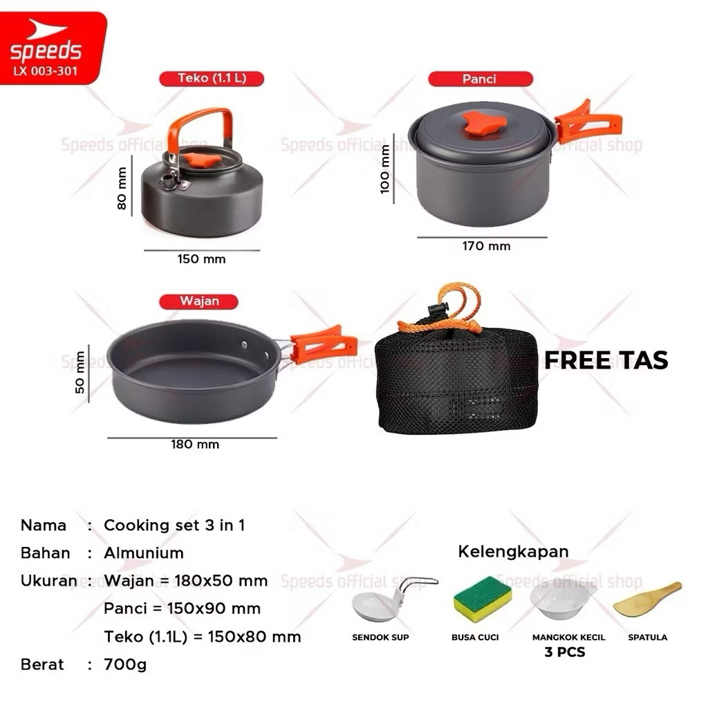 SPEEDS Alat Masak Set Camping Mini Kemah Rekreasi Paket Cooking Set Kemping Praktis Portable Outdoor 003-301