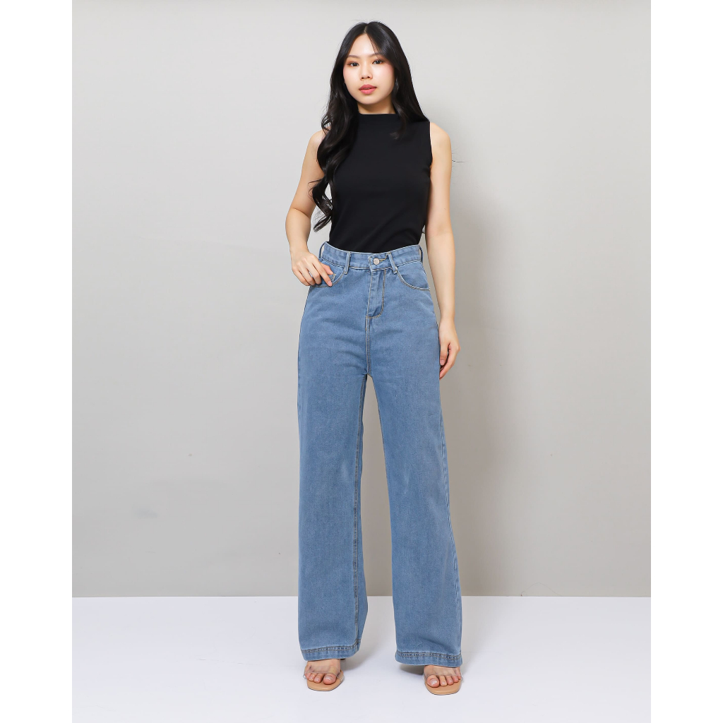 BLUEPANSY.ID - Jeanus Loose Jeans Wanita High Waist Wide Leg – Kulot Soft Denim Oversize