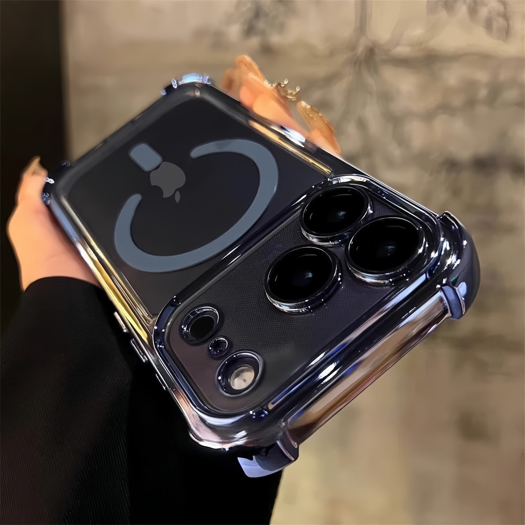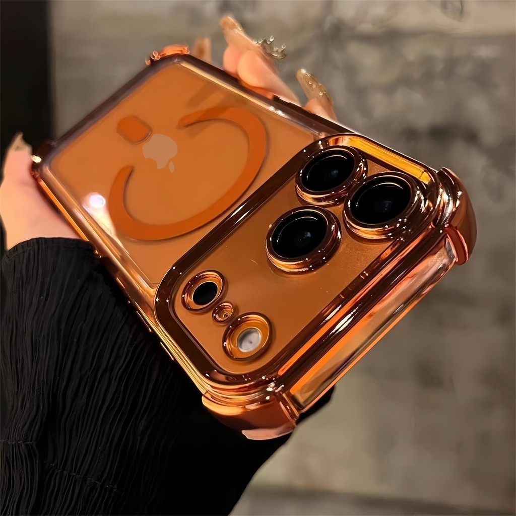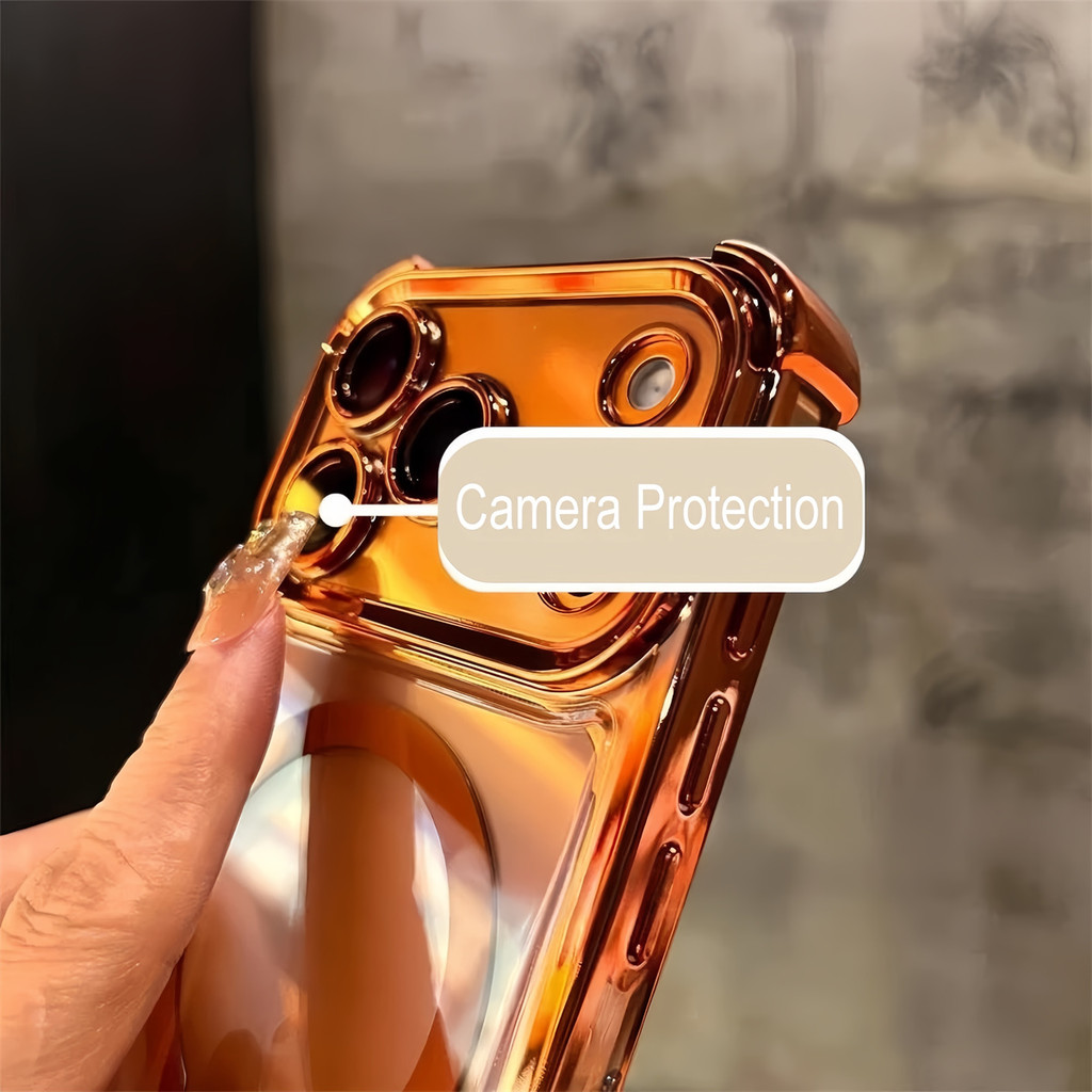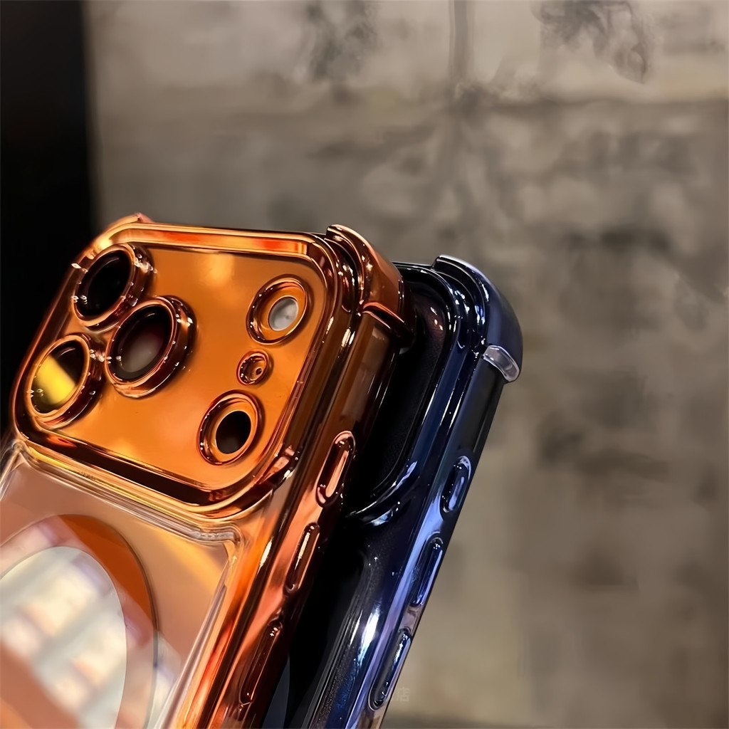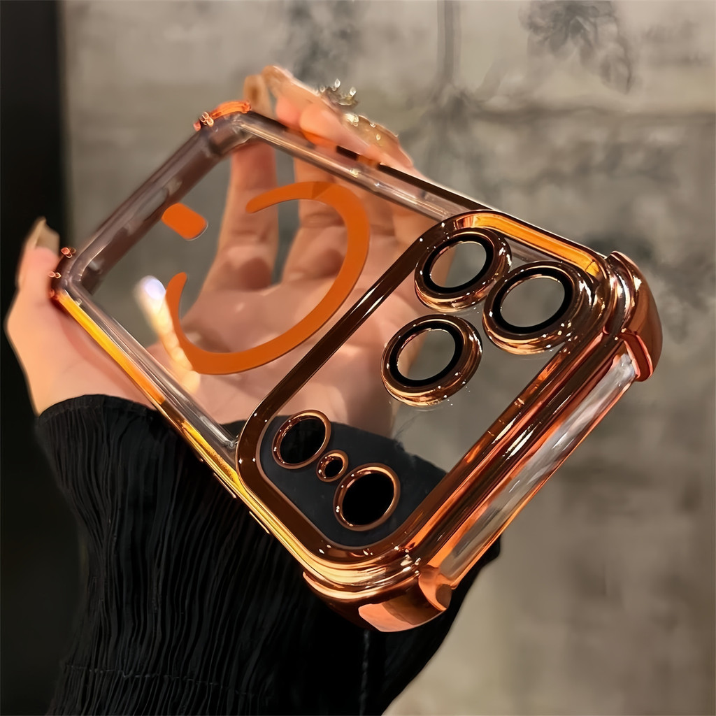 Luxury 6D Plating Cosmic Orange Magnetic Phone Case for IPhone 17 Pro Max 17 Air Clear Hard Acrylic Case Shockproof Cover