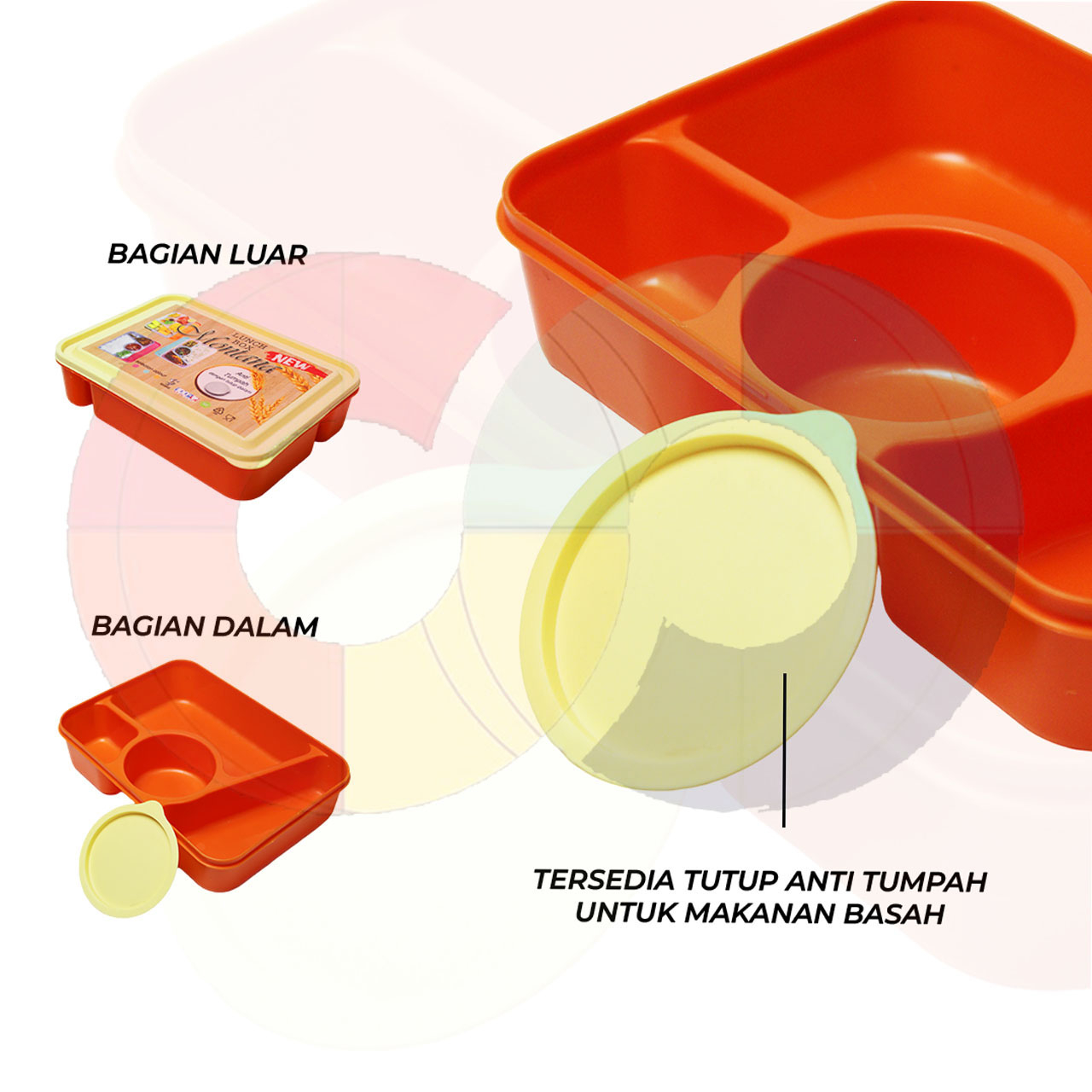Kotak Makan Lunch Box 4 Sekat Anti Tumpah Food Grade - Plastik Murah Murah Gratis Ongkir