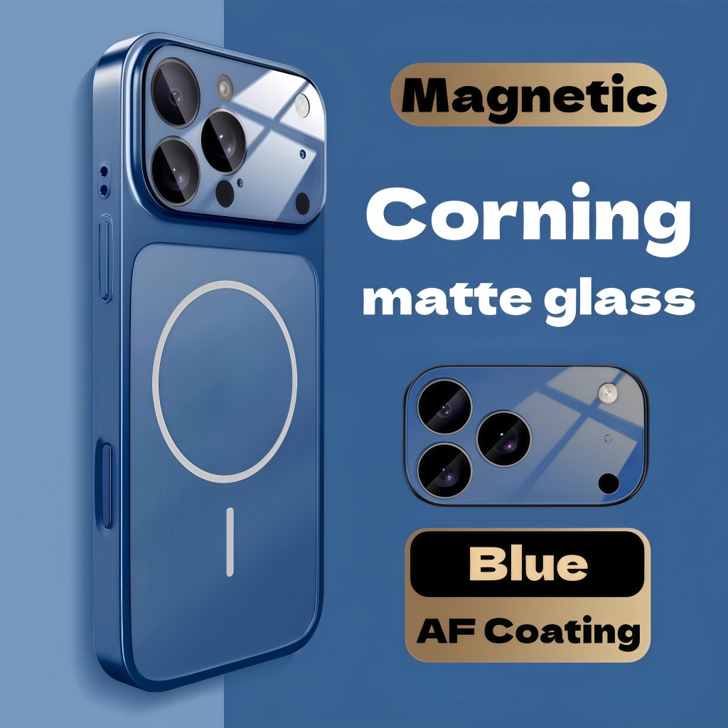 New Blue Casing Luxury Shockproof Corning Matte Glass Phone Case with Lens Protector for iPhone 16 15 14 13 Pro Max to 17 pro max air pc hard case magnetic back cover