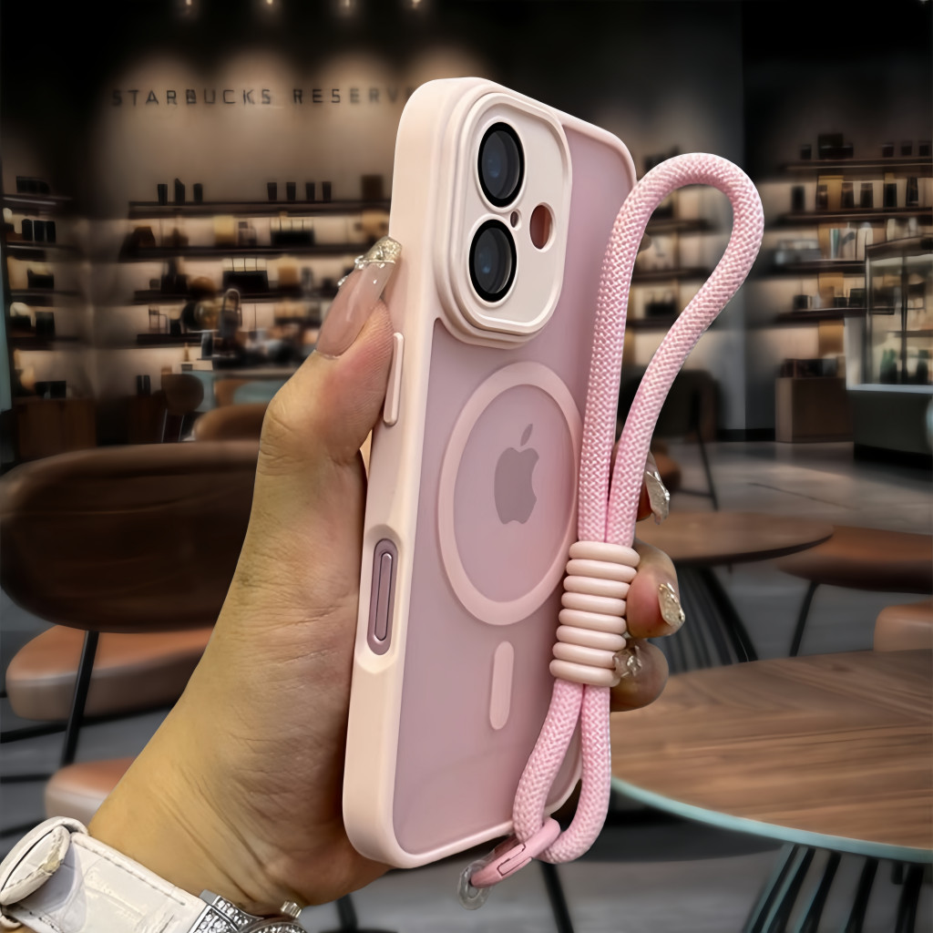 Lanyard Luxury Matte titanium gray magnetic wireless charging anti-fingerprint hard phone case For iPhone 16 15 14 13 12 11 Pro Max Case Premium 16plus Shockproof Magsafe Cover