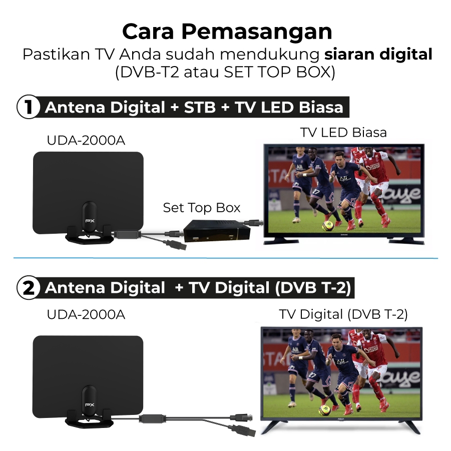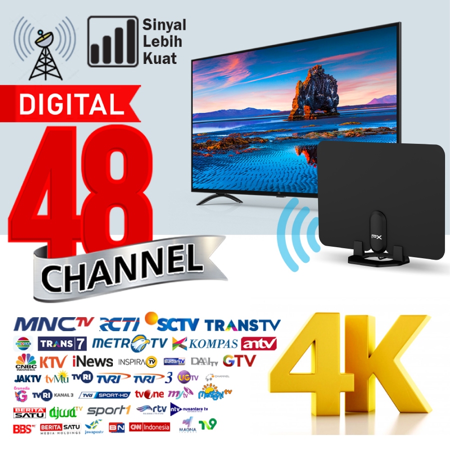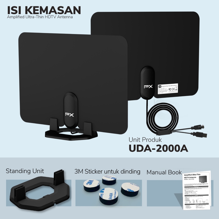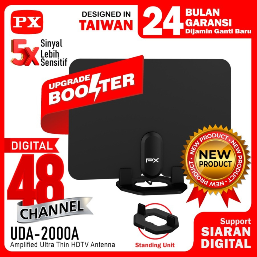 Antena TV Digital Analog Indoor Dinding DVBT2 + Booster Antenna PX UDA-2000A