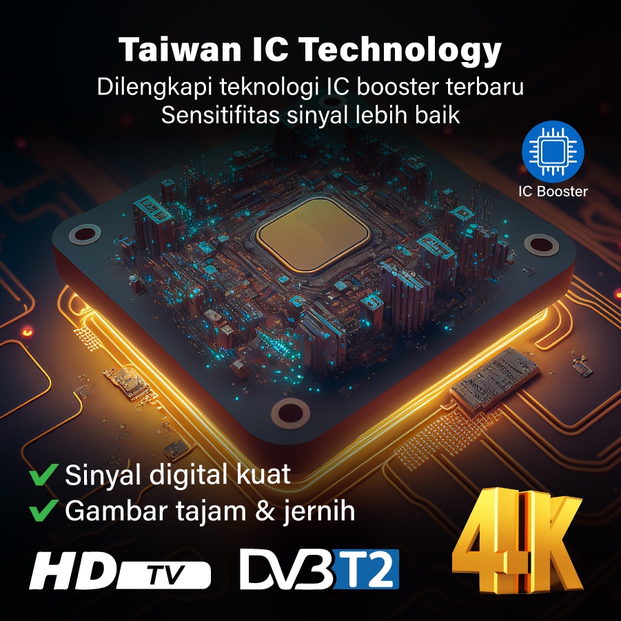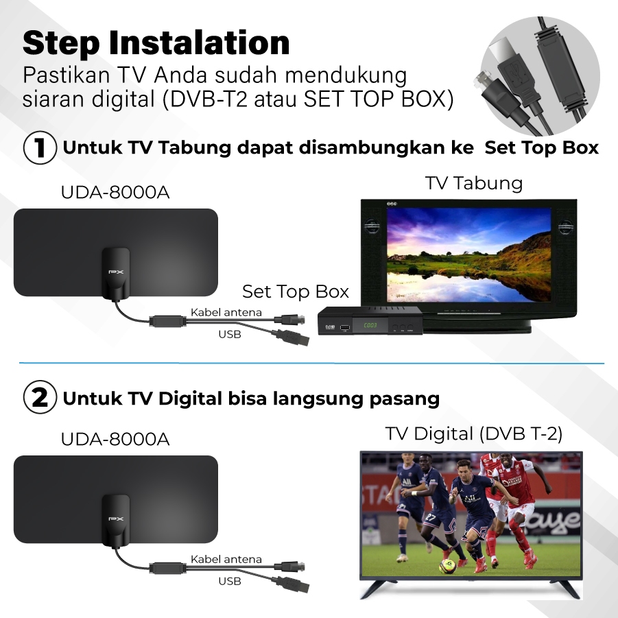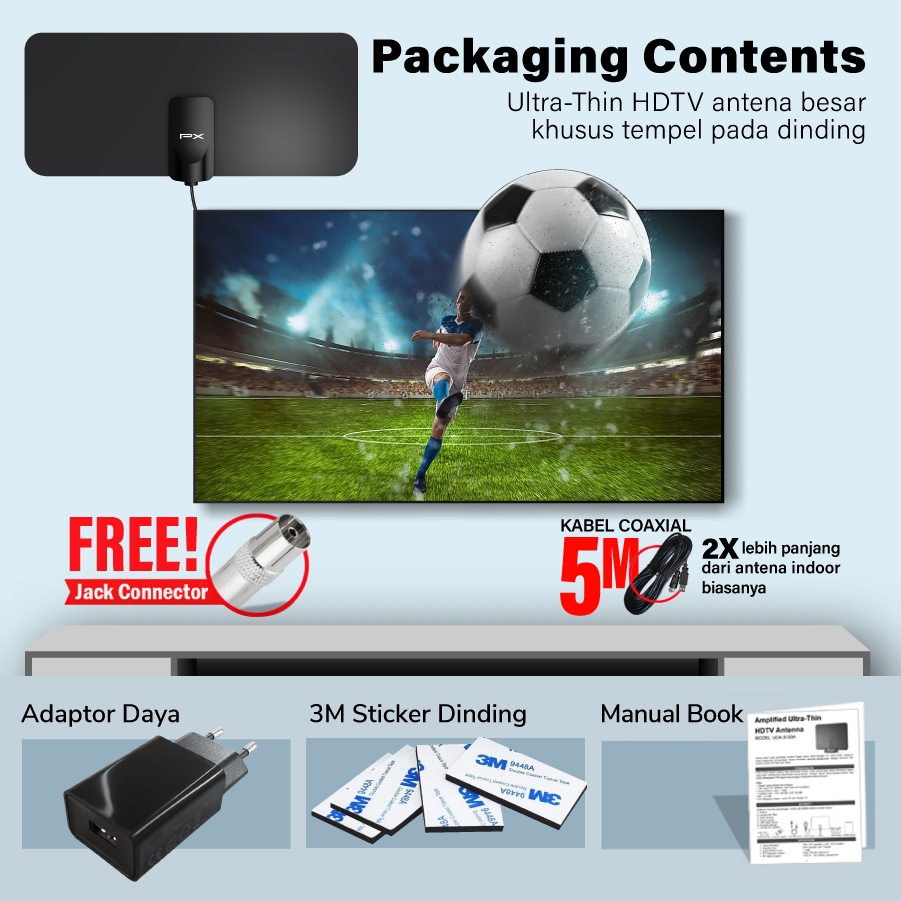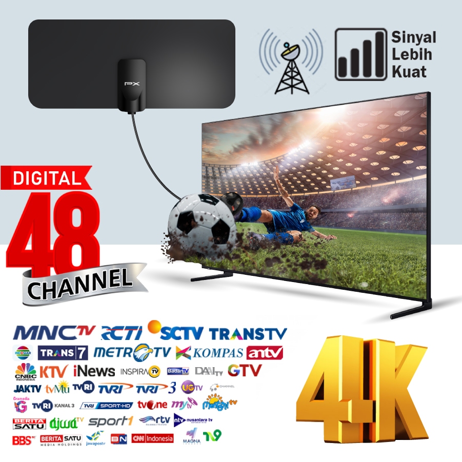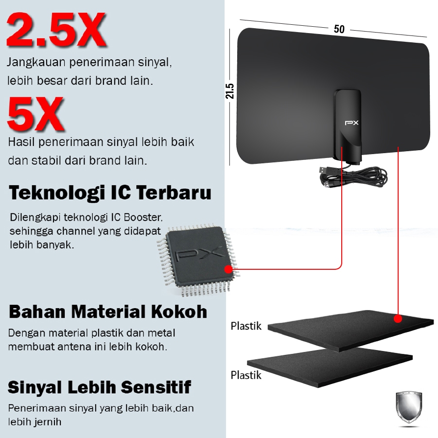 Antena TV Digital Indoor Booster DVBT2 4K Ultra Thin Antena Dinding PX UDA-8000A