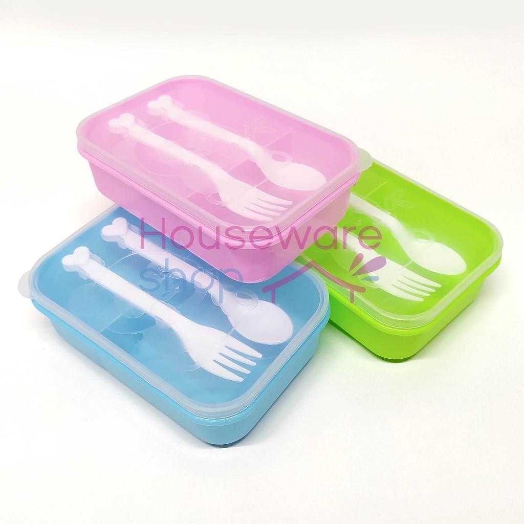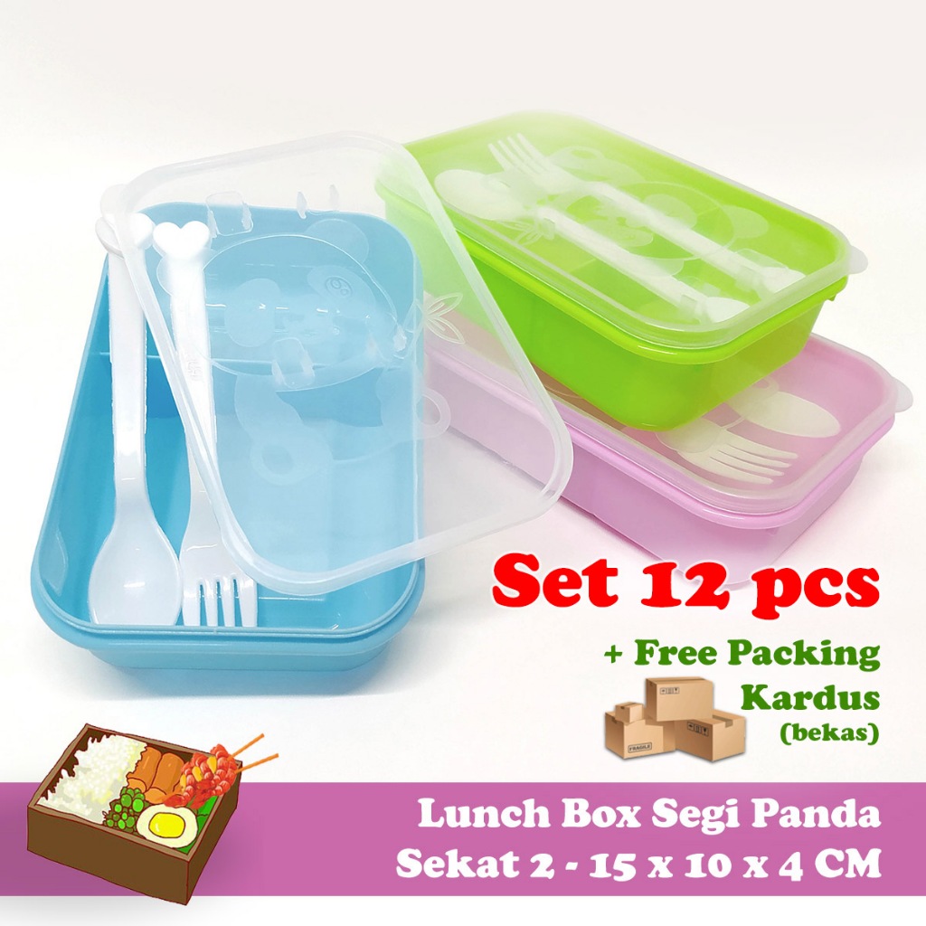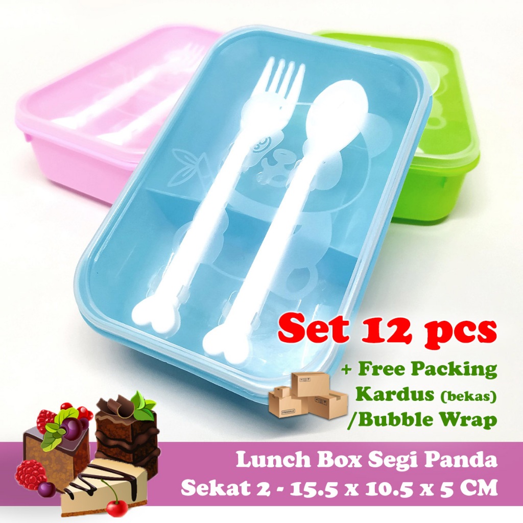 [LUSIN] Set 12 Pcs Lunch Box Segi Panda Sekat 2 - Free Sendok Garpu / Tempat Makan Wadah Bekal Anak Food Grade - Souveni