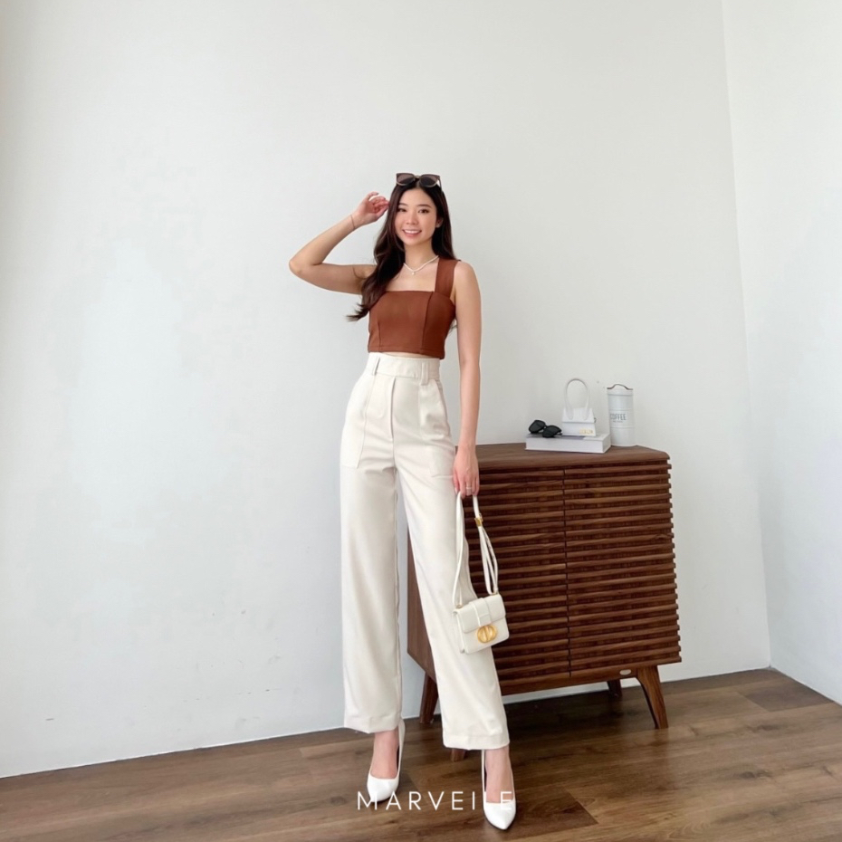 [ Marveile ] Diora Highwaist Pants / Kulot Straight Cut Pants Wanita