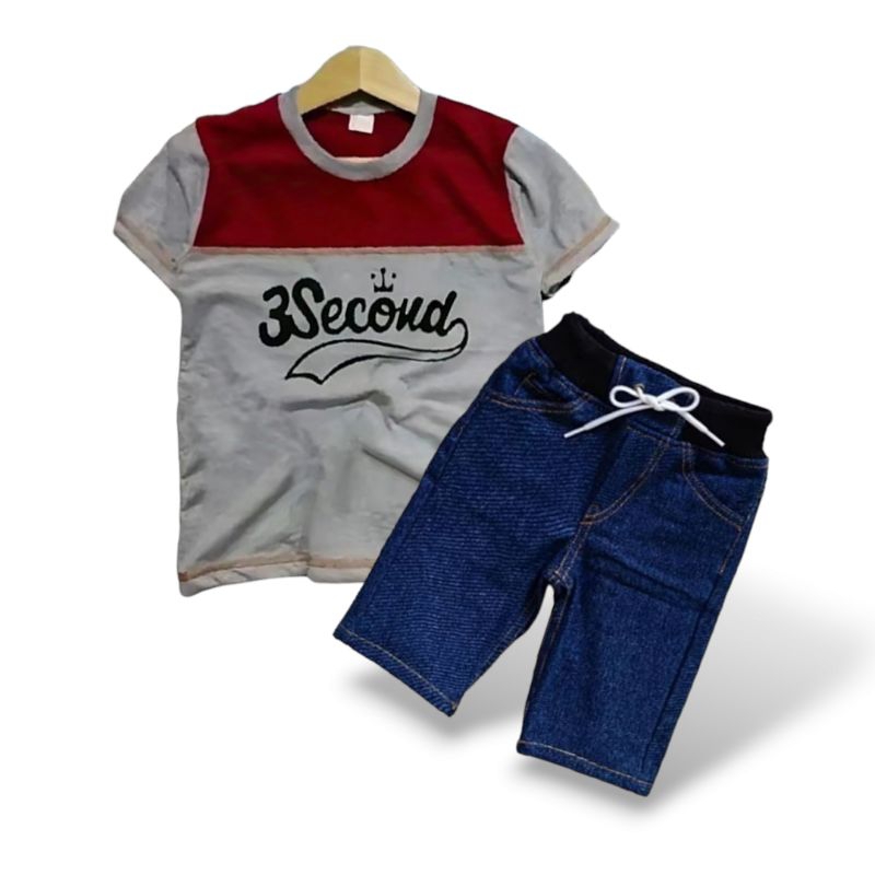 Promo Murah Celana Jeans + Kaos 4 Stel - 5 Pasang Setelan Baju Anak Cowok Usia 2-5-8-12 Tahun Tebal Lembut Laki-Laki Jin