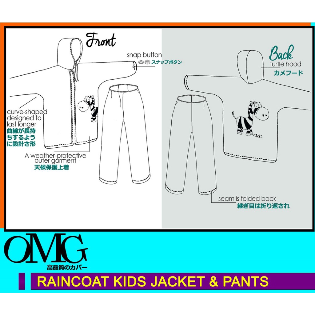Jas Hujan Jaket Celana Anak SD SMP Raincoat kids Children Japan OMG JACKET PANTS