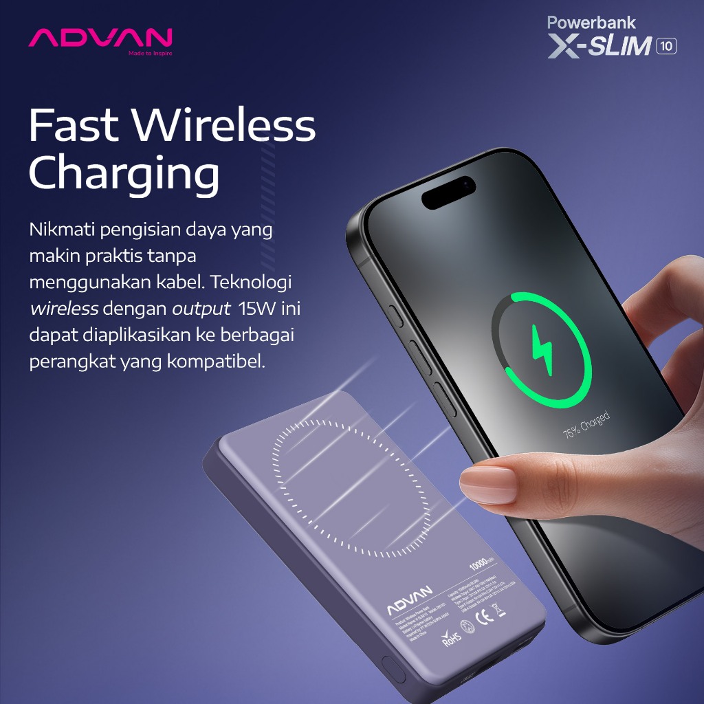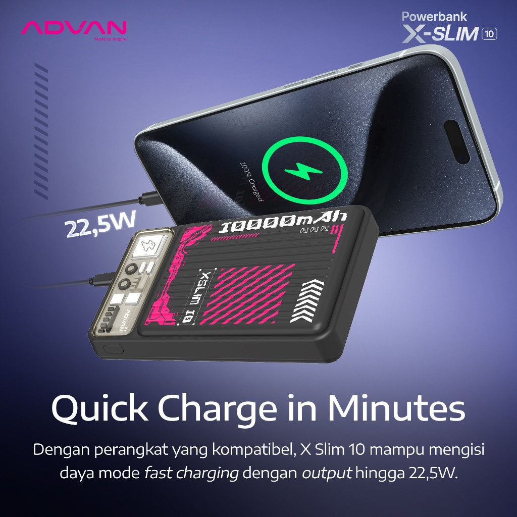 [BEST DEALS] ADVAN Wireless Powerbank Xslim10 | Capacity 10.000mAh | MagSafe Fast Charging Up to 22.5W | Slim & Compact Design | Garansi Resmi 1 Tahun