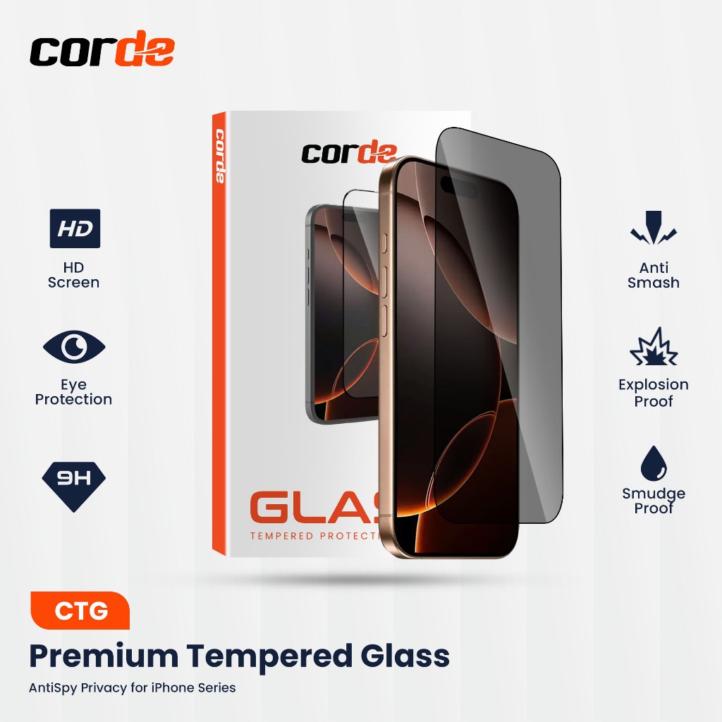 CORDE Anti Spy Privacy Tempered Glass iPhone 17 Pro Max Air /16/15/14/13/12/11/X XR XS Max Full Protection