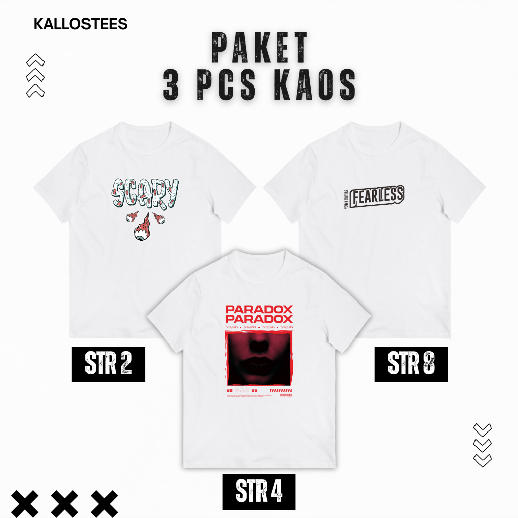 Paket 3 Kaos Hitam Putih Distro Streetwear Cowok Cewek – T-Shirt Katun Combed 24s KALLOSTEES
