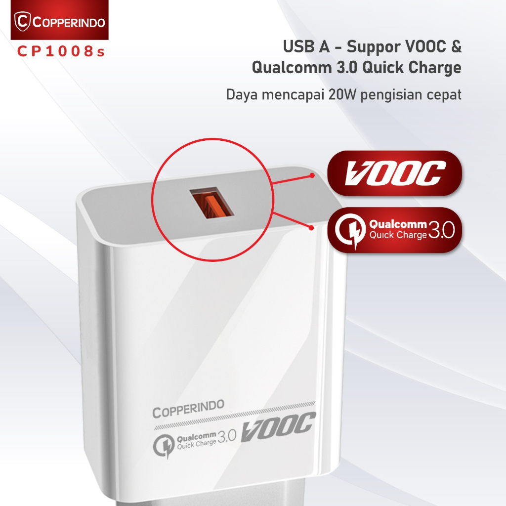 COPPER CP1008 Charger Single Port Up to 20Watt + QC 3.0 Fast Charging