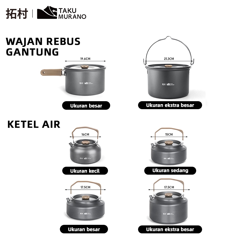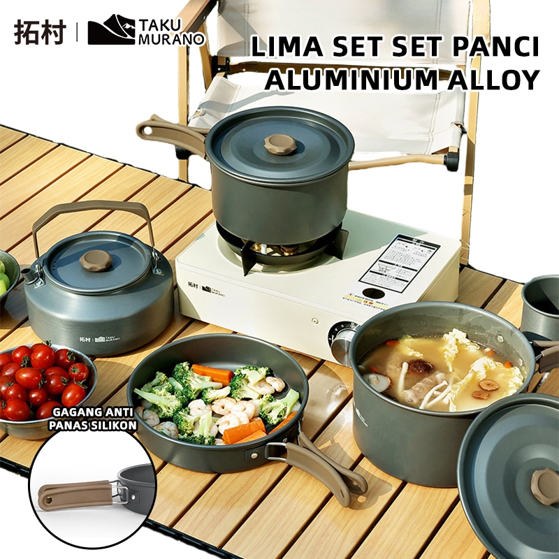 TAKU MURANO Cooking Set Camping Panci Teko Gunung 3\4\5\pcs Outdoor Camping Mendaki Gunung Aluminium Ringan Portabel