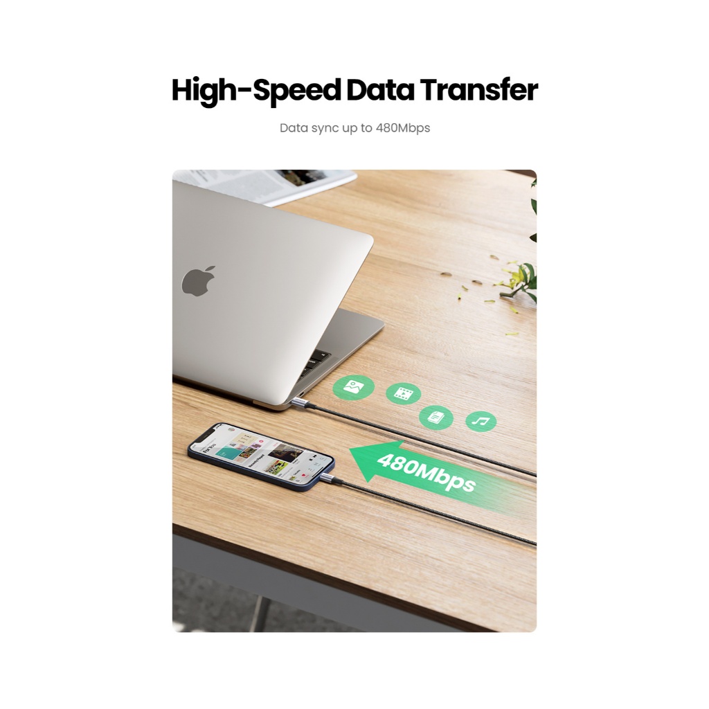 UGREEN Kabel Charger MFi For iPhone X XS XR 11 12 13 14 Pro Max USB Type C to Lightning Fast Charging 20W