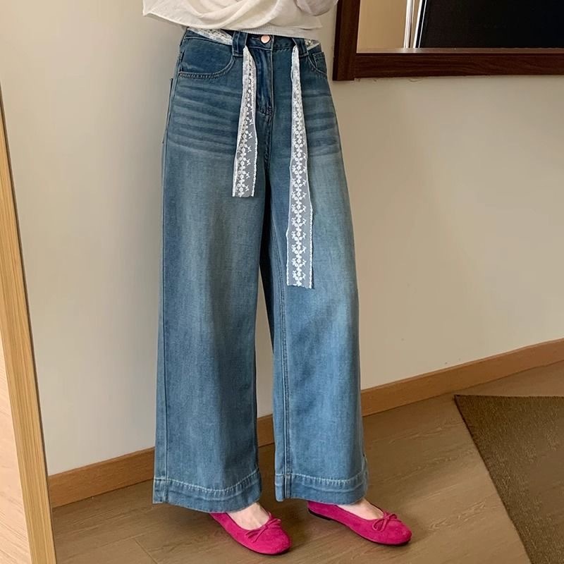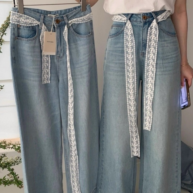 GDTIMA Jeans Wanita Highwaist Celana Pants Kulot Jeans Celana Jeans Terbaru Bunga Renda