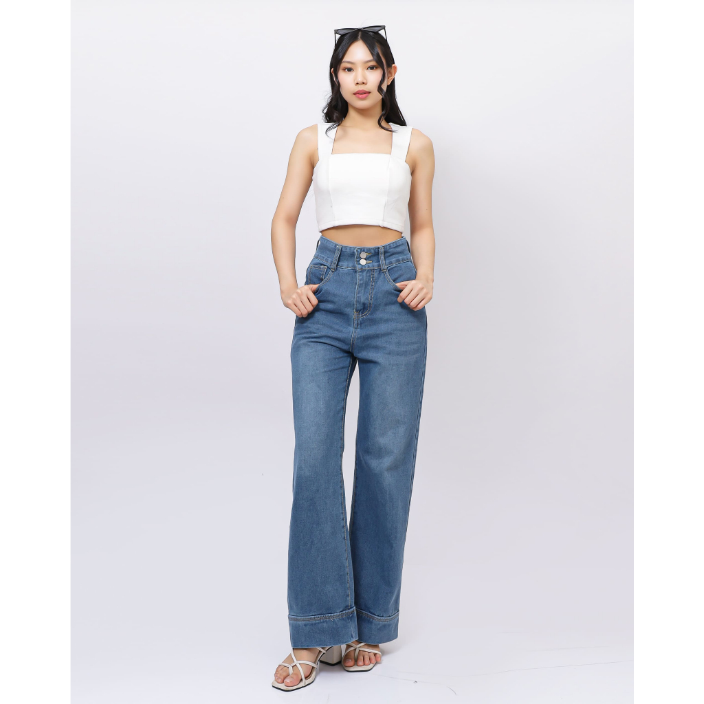 BLUEPANSY.ID - B01 Loose Jeans Wanita High Waist Wide Leg – Celana Panjang Kulot Jeans