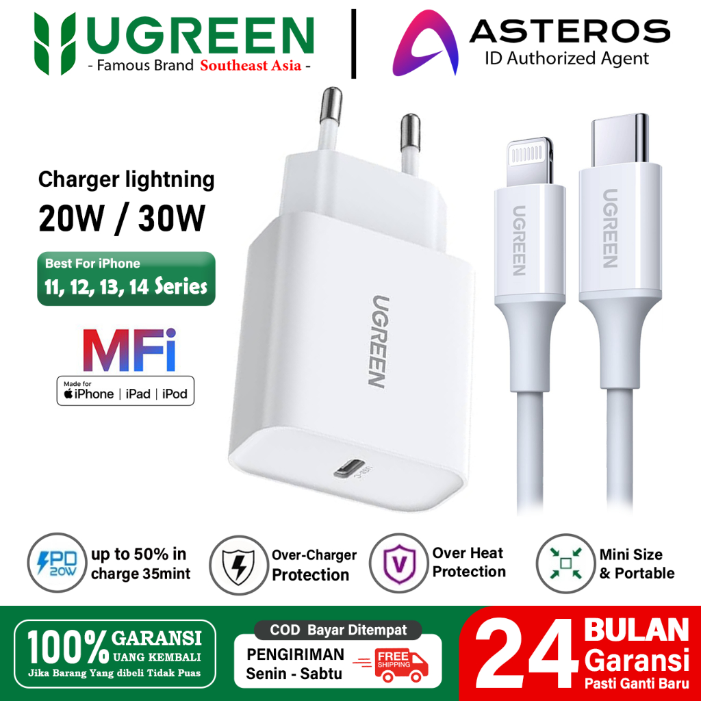 UGREEN Charger iPhone 20W - 30W Type C to Lightning Mfi Fast Charging iPhone 11 12 13 14 Series