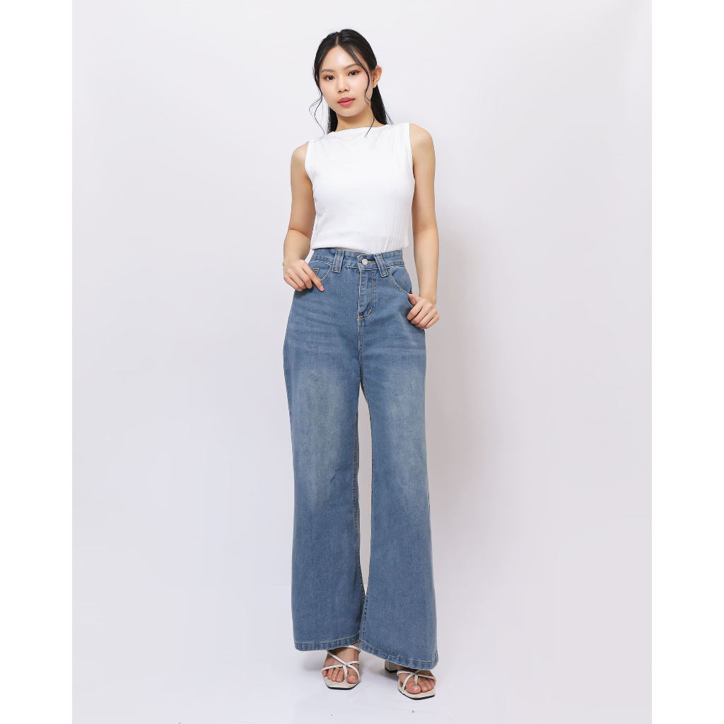 BLUEPANSY.ID - 151 Baggy Jeans Wanita High Waist Wide Leg – Celana Jeans Kulot Kekinian