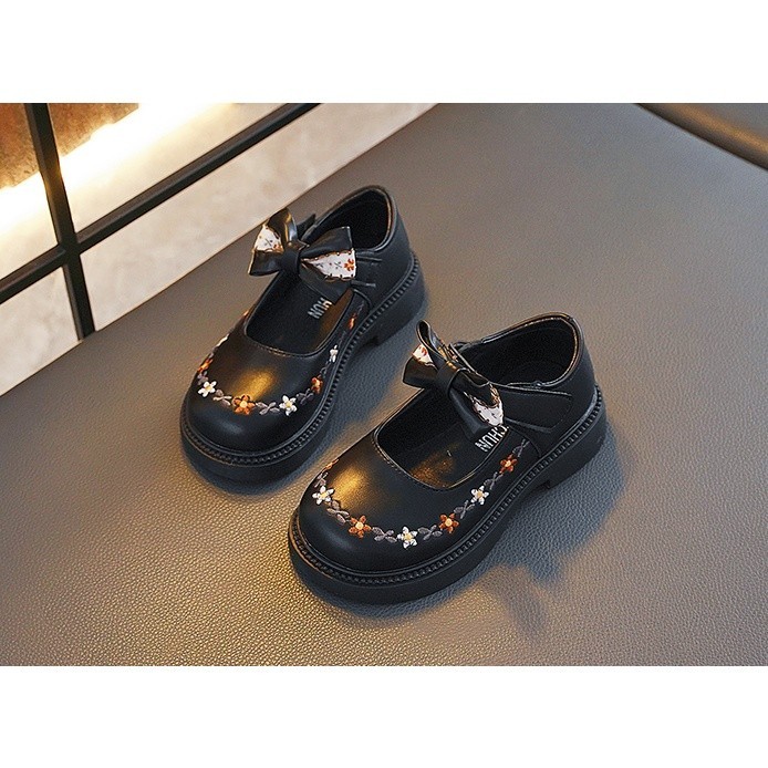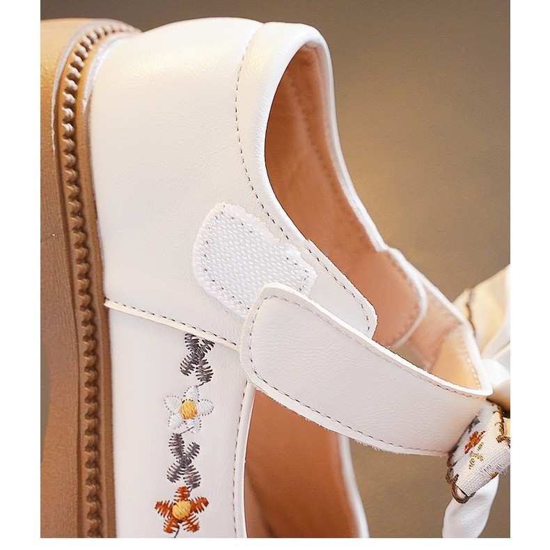 Bunga Sepatu Flat Kulit Bayi Perempuan Ukuran 23-34 Sepatu Anak Ikatan Simpul Sederhana Elegan Bordir Ujung Bulat