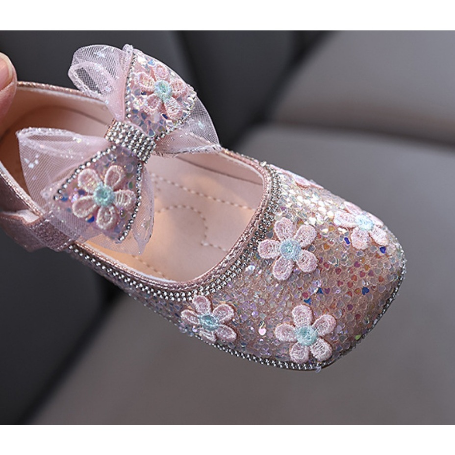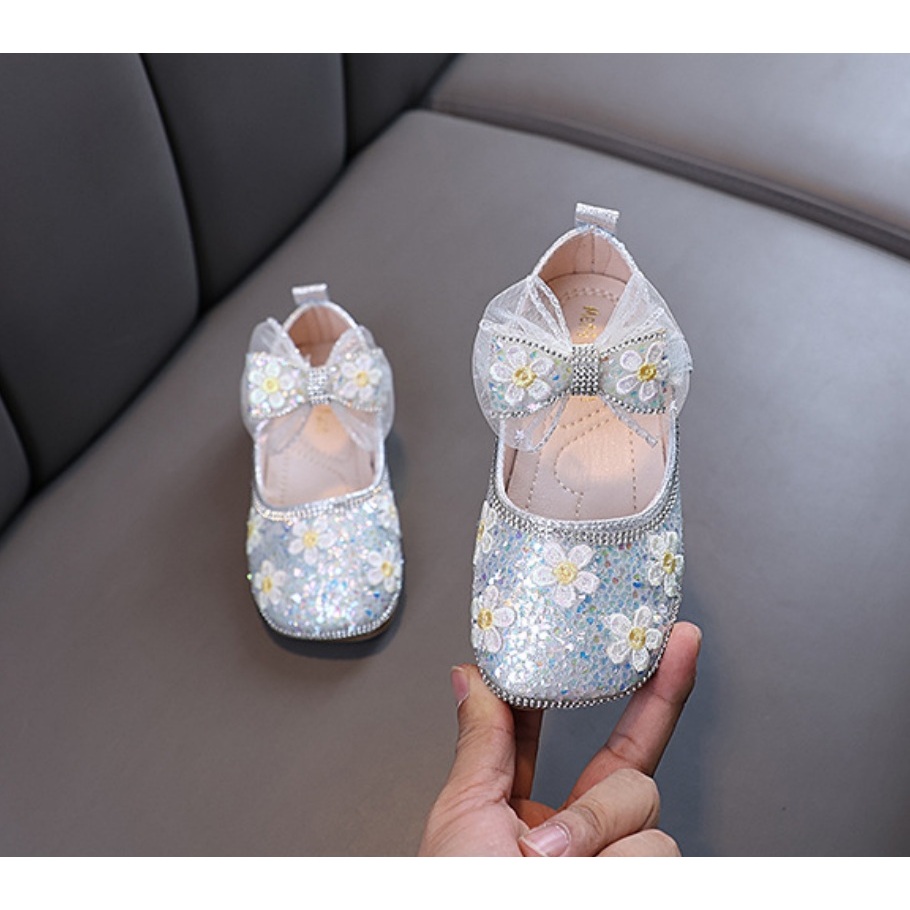 C199 sepatu pesta anak PREMIUM sepatu bunga manik diamond emas pesta anak perempuan tali tempel import